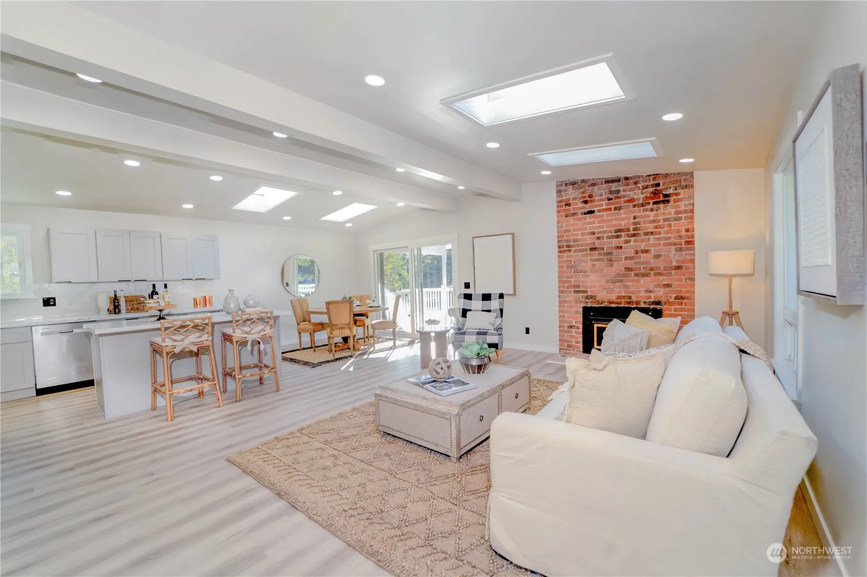 Discover modern elegance in this exquisitely updated 3-beds, 2-baths upper level, complemented by a lower 3-beds, 1-bath mother-in-law suite. Spanning a generous 2,500 square feet, this home has undergone a transformation to embrace a refined contemporary aesthetic while preserving the comforting essence of “home”. Step inside a harmonious open floor plan that seamlessly merges with a stunning kitchen, featuring new quartz countertops and stainless steel appliances. Each level stands independently with its dedicated entry, laundry room, and cozy fireplaces. This unique offering presents a rare opportunity for co-ownership or the creation of a lucrative rental income stream in vibrant Burien.