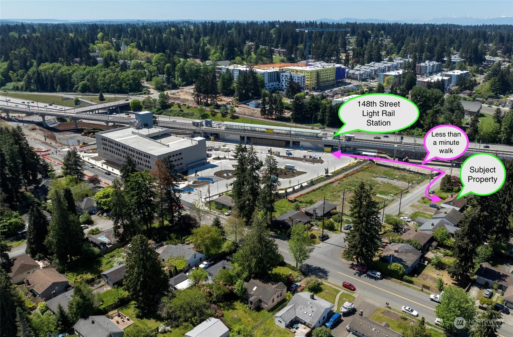 Value in the MUR70 zoning allowing for 70 foot high apartment construction zoning. Light rail station less than 200 yards away. 8138 ft 2 lot allow for more units per floor. More detail info and aerial photos on light rail, bridge across west side of I-5 etc. A few properties closed by sold for 1.1 million almost two years ago. Buyer to verify all info to their satisfaction and intended use.