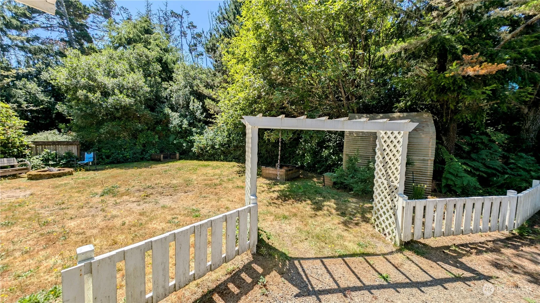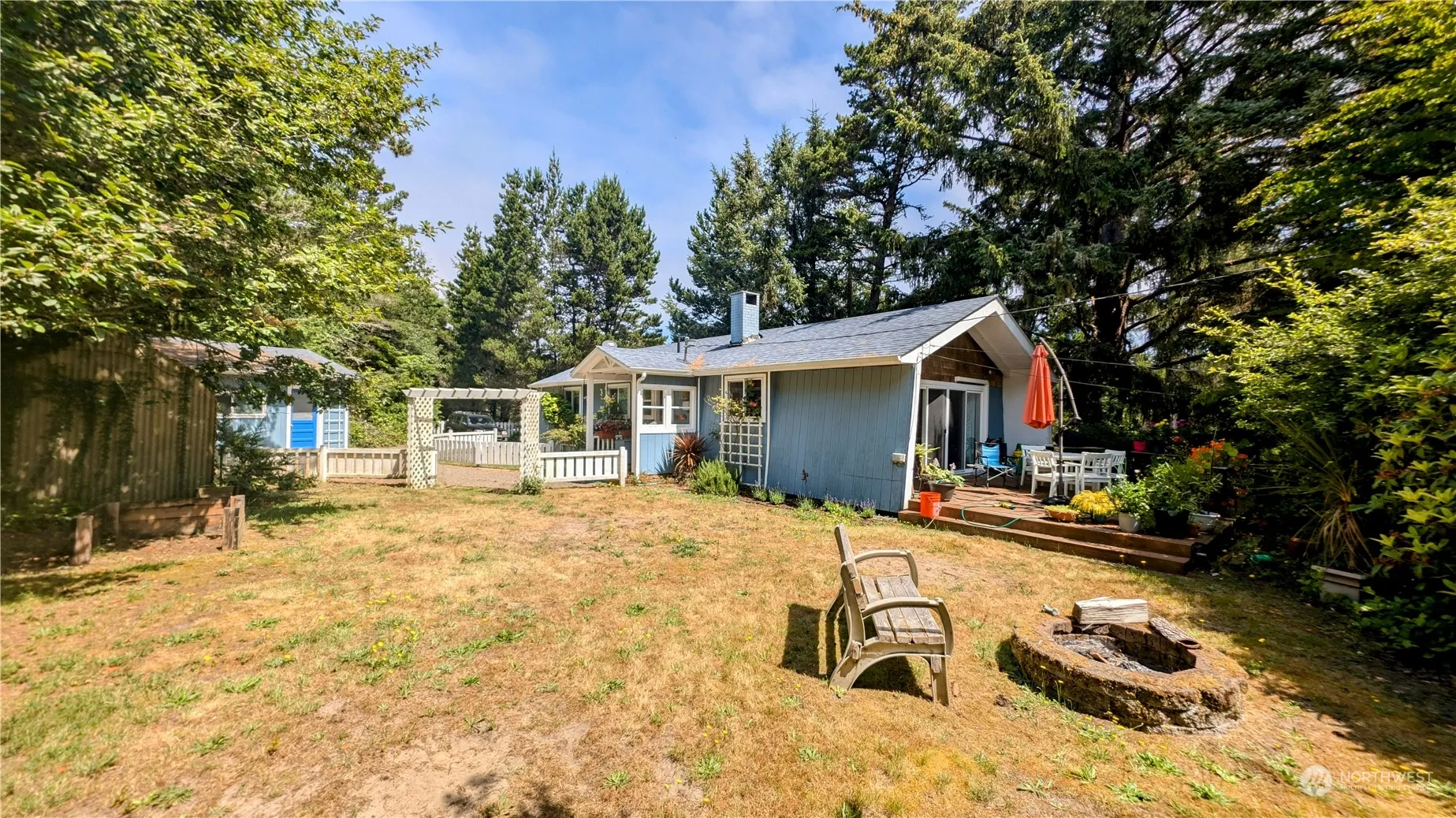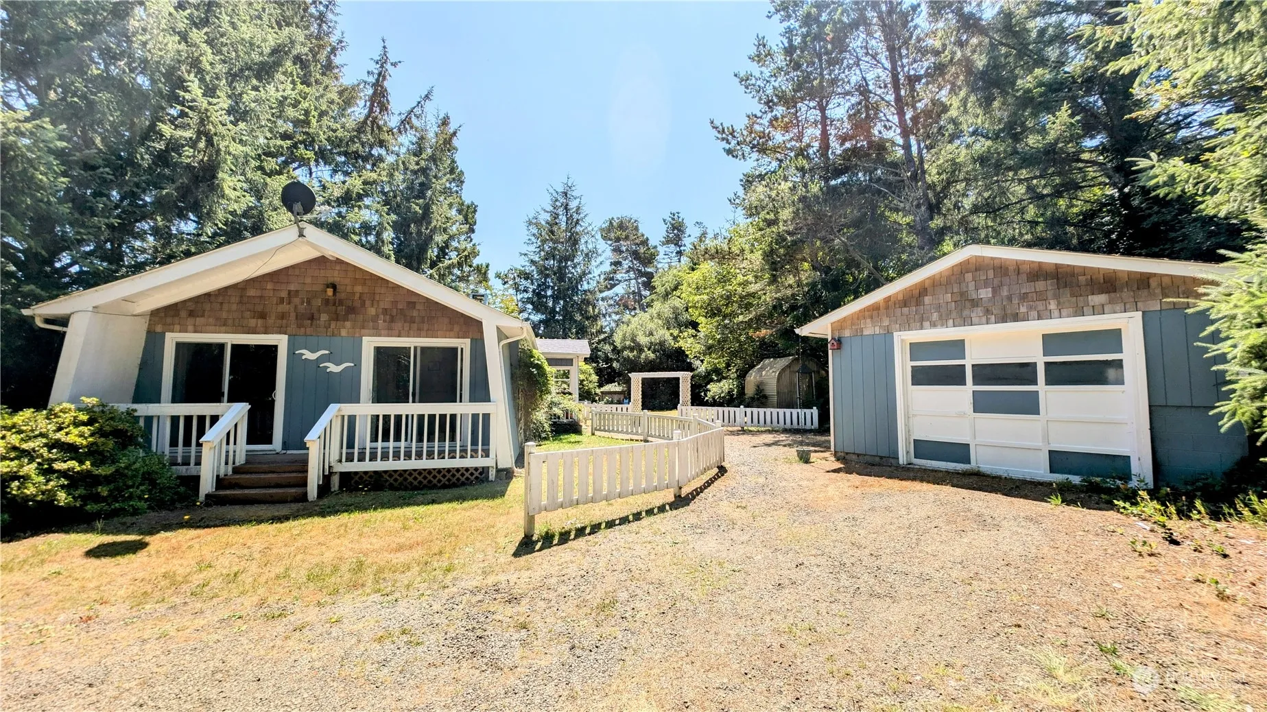 Darling 3 bedroom cottage just minutes from the beach. Located in the desirable Surfside community. Beautiful double lot tucked away up a hill it gives the feeling of solitude and space not found elsewhere in the area. Cozy fire place, high ceiling and open floor plan lead out to the large deck for entertaining. Detached garage, greenhouse, fire pit, and a few blocks to the beach! Come take a look at this true gem!