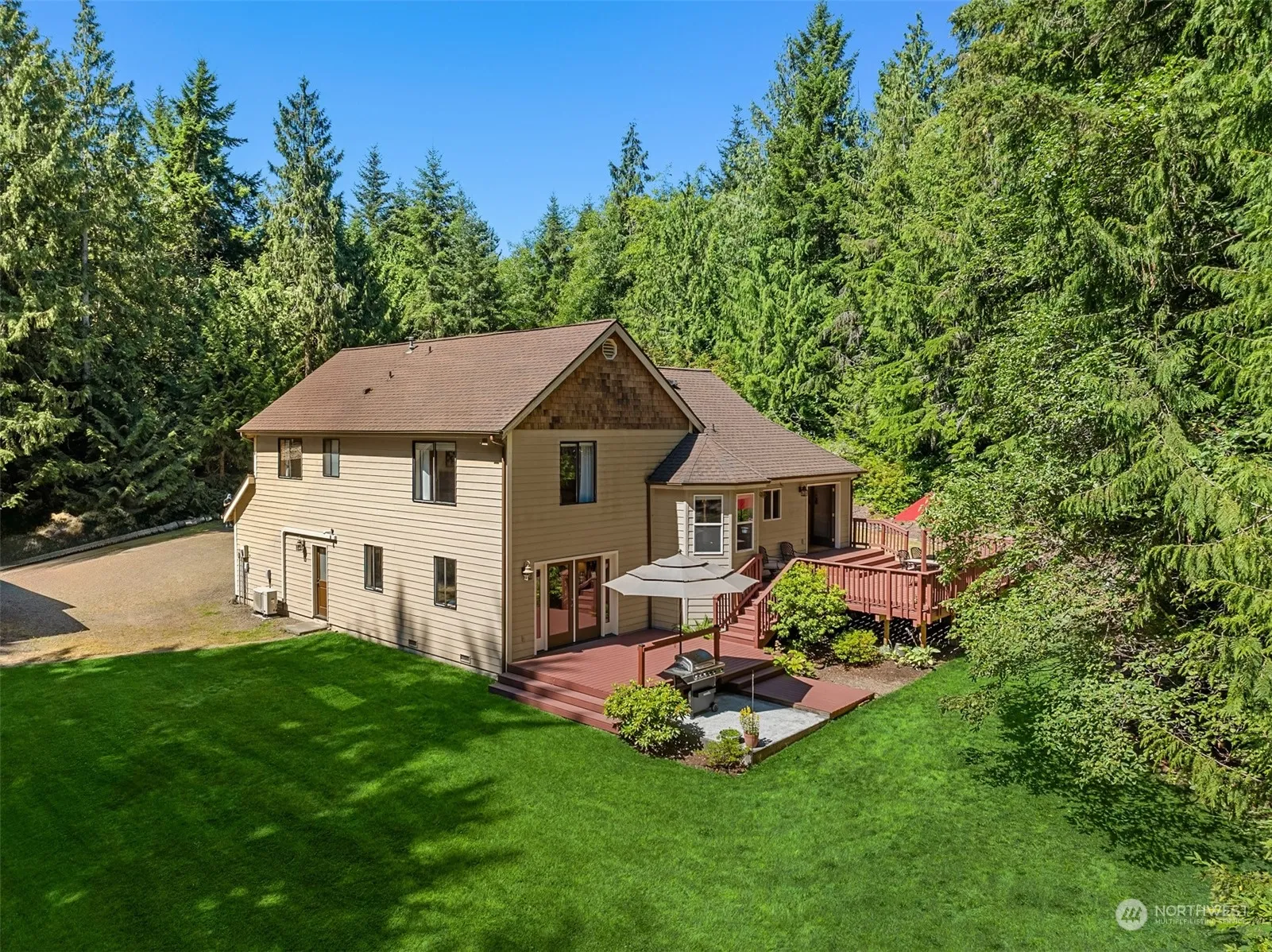 This lovingly maintained, custom-built home sits at the end of a private lane on 2+ mostly level, sunny acres. The thoughtful floor plan lives larger than the square ft. The main level living room, formal dining room & kitchen open to a spacious back deck. Downstairs boasts a cozy den that also opens to the lush yard. Three bedrooms up, including the owner’s suite. One bedroom is currently being used as an office/study & has a built in murphy bed. Large, well-appointed shop space with lots of storage above. Carport & covered RV parking. Just minutes to both Poulsbo & Kingston schools, shopping & ferries. Take some time to explore the nearby Heritage Park Trail system. Perfect for hiking, mountain biking & trail riding. Convenient & private.