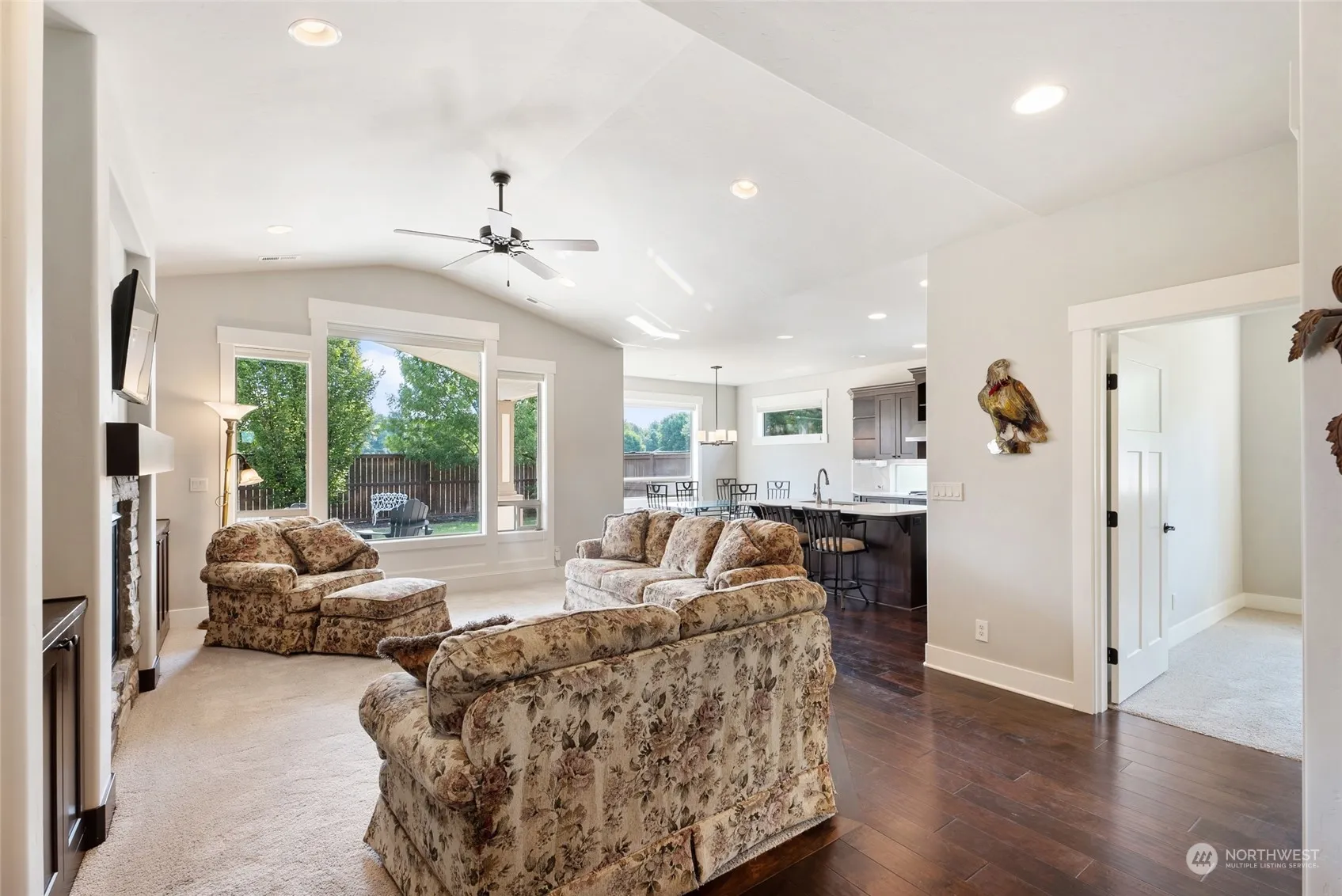 One level living, Pahlisch built home offering low maintenance living in the Villages of Garrison Creek. Numerous upgrades featuring beautiful built-ins around the fireplace, large windows that provide a view of the covered patio and backyard. The kitchen is equipped with a walk-in pantry, under cabinetry lighting, counter-level windows for natural light, gas cooktop, soft close cabinetry with elegant quartz countertops. The primary bedroom encompasses a spacious double sink vanity, tiled shower, and stunning walk-in closet. Throughout the home, you’ll find beautiful trim finishes, a wonderful floor plan with excellent flow, and ample storage. Additional upgrades include a tankless hot water heater, garage storage, and a workbench.