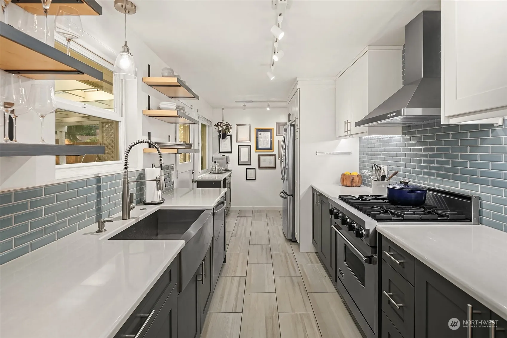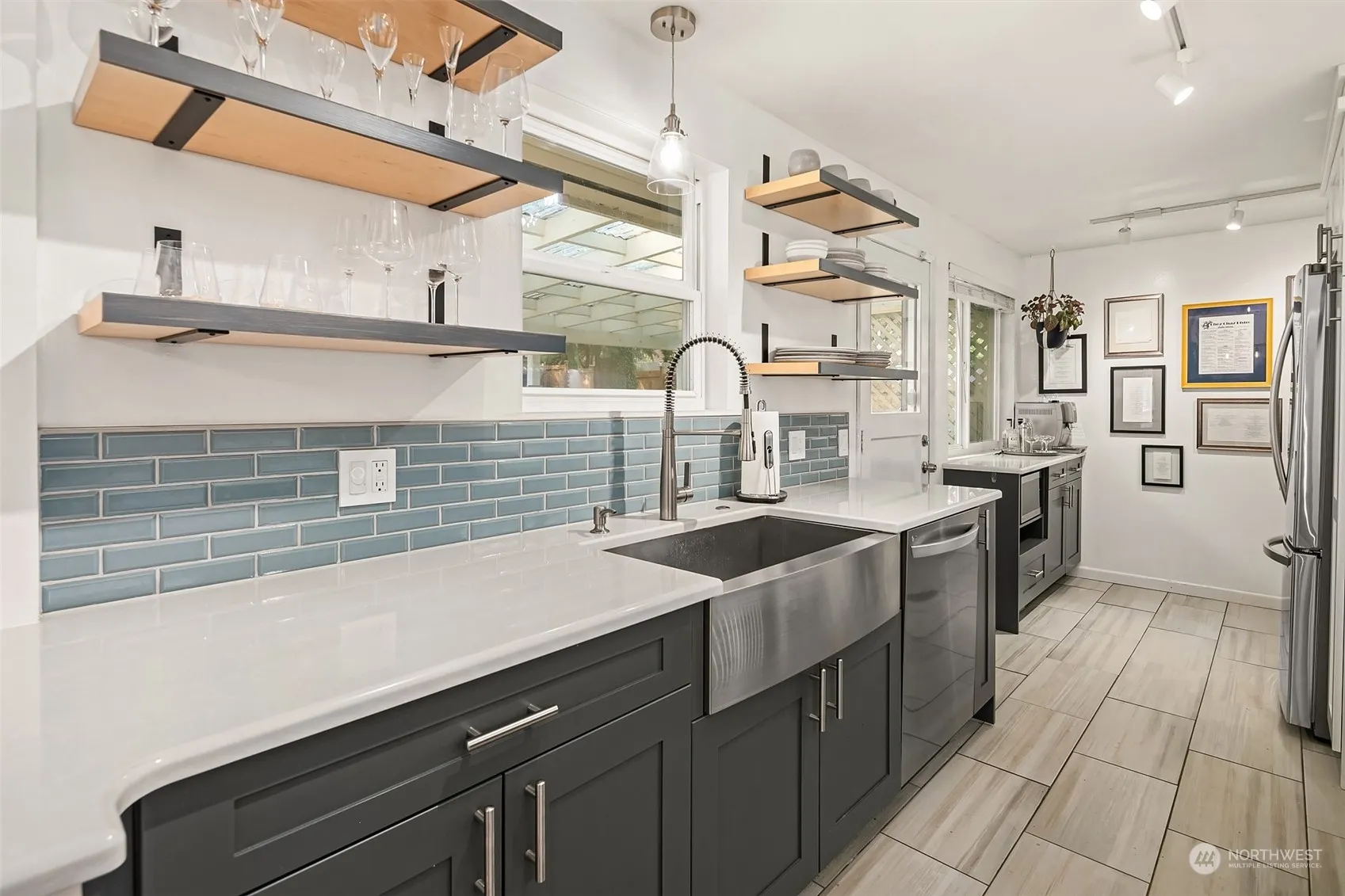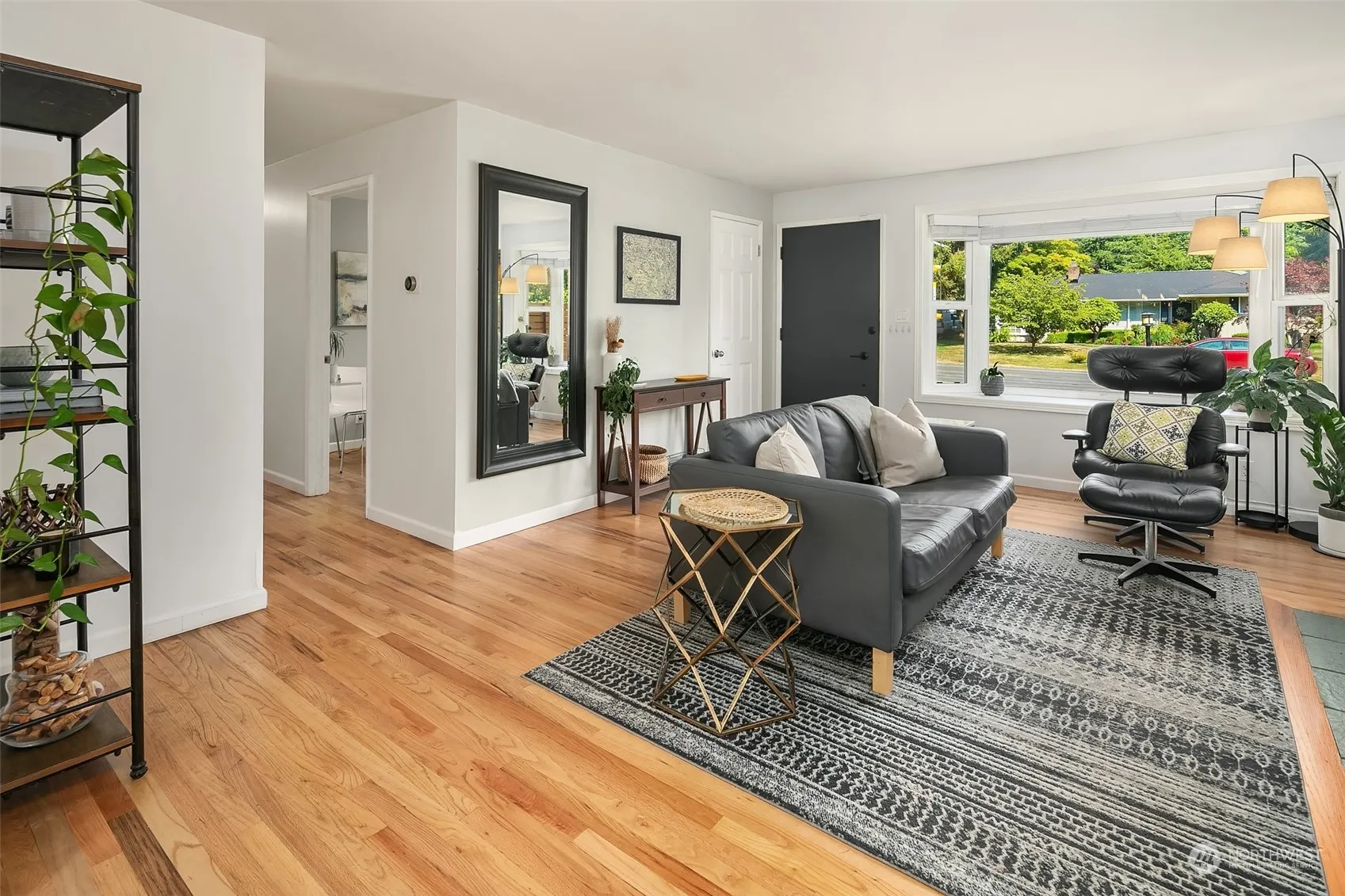Move-in ready rambler in prime location with sidewalks, amazing parks, grocery & 185th light rail station opening next month! Lovely living room greets you w/ sunny bay window & wood fireplace. Fully remodeled kitchen complete w/ coffee bar, quartz counters, custom cabinets, tile floor, new dishwasher & sexy Viking gas range! Huge primary bedroom- fits a king size bed plus room for desk/dresser. Updated bathroom w/ designer finishes. New furnace & hot water tank. Refinished oak hardwood floors throughout living space & bedrooms. Energy efficient double pane windows & Nest thermostat. Covered patio for grilling year round. Large level lot w/ HUGE shed for all your hobbyists dreams plus additional garden shed. Get ready to entertain!