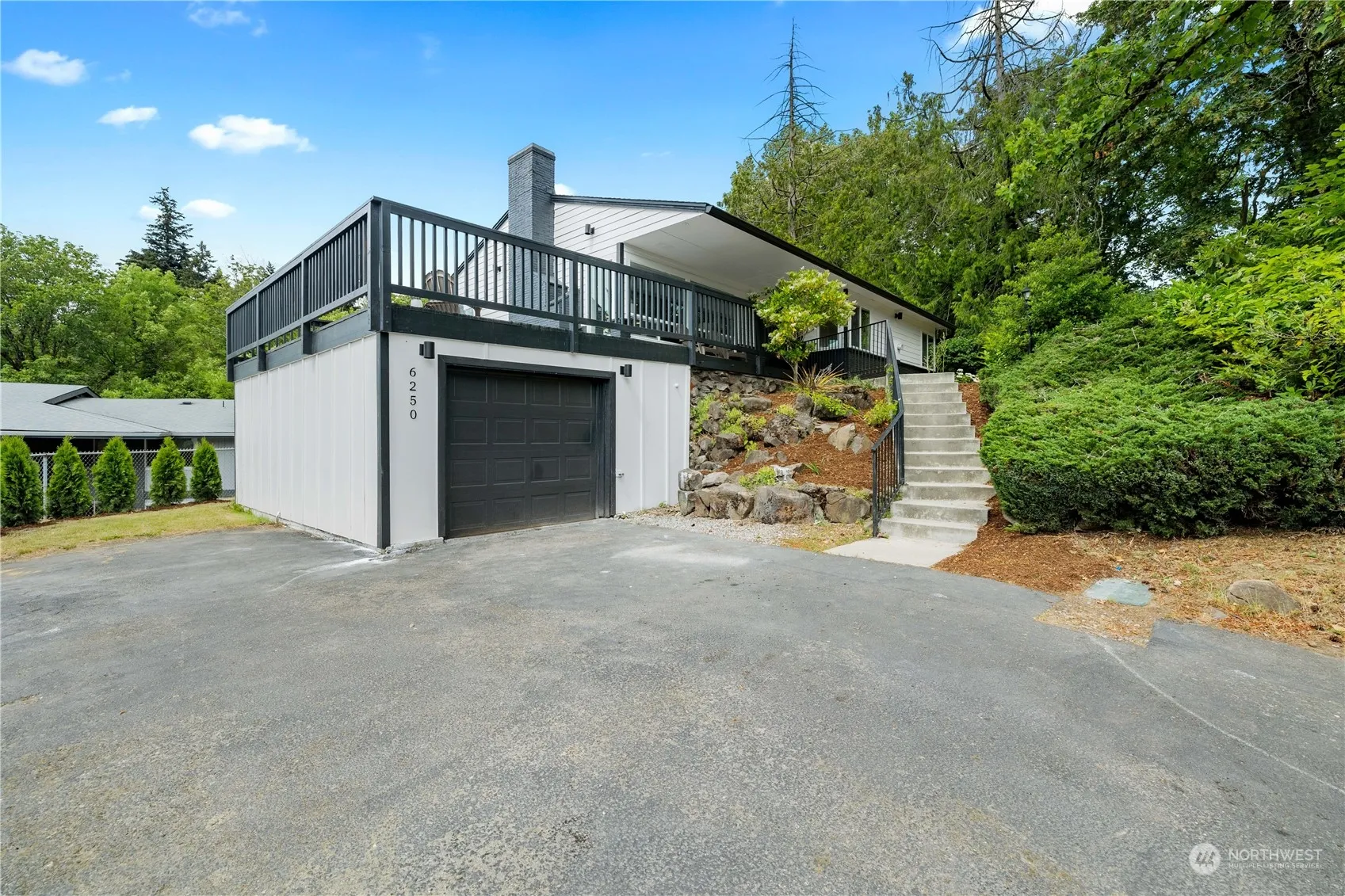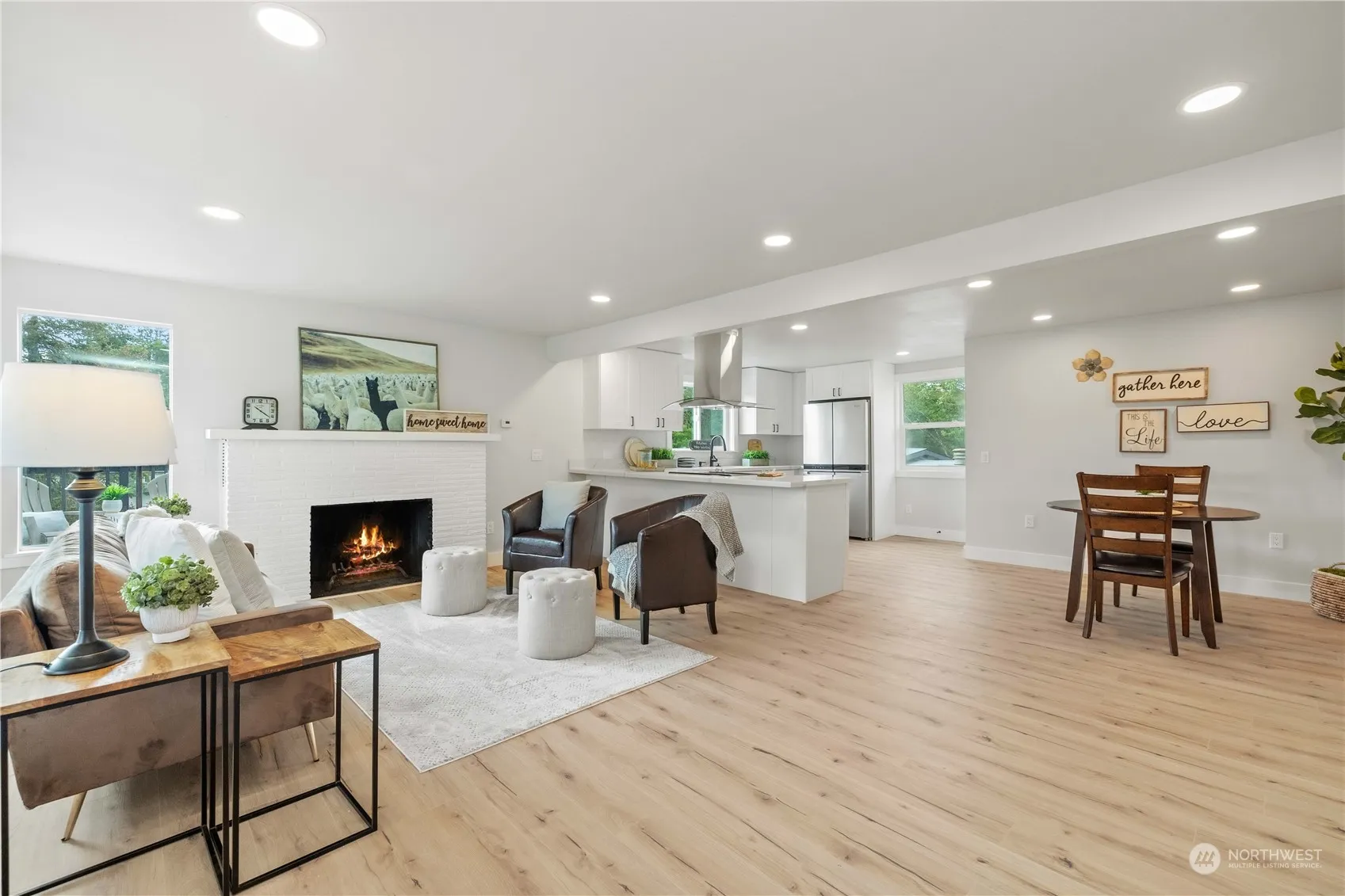 Exceptional opportunity in Tukwila! Daylight rambler, nestled on nearly half an acre, presents a chance for multigenerational living or income potential w/its dual entrances. Main floor greets you w/stunning great room flooded w/natural light & a cozy wood-burning fireplace, complemented by an open-concept kitchen & a welcoming eat-in dining area. Down the hall a sizable primary retreat w/attached en-suite, along w/two generous beds & a 3/4 hall bath. Lower level features a large bedroom, full bath, office/den, & a convenient utility space. Relish the perks of an oversized one-car garage, a sizable front yard, and a sprawling deck perfect for both hosting gatherings and unwinding after a busy day. LDR Zoning – complete your ADU & add DADU