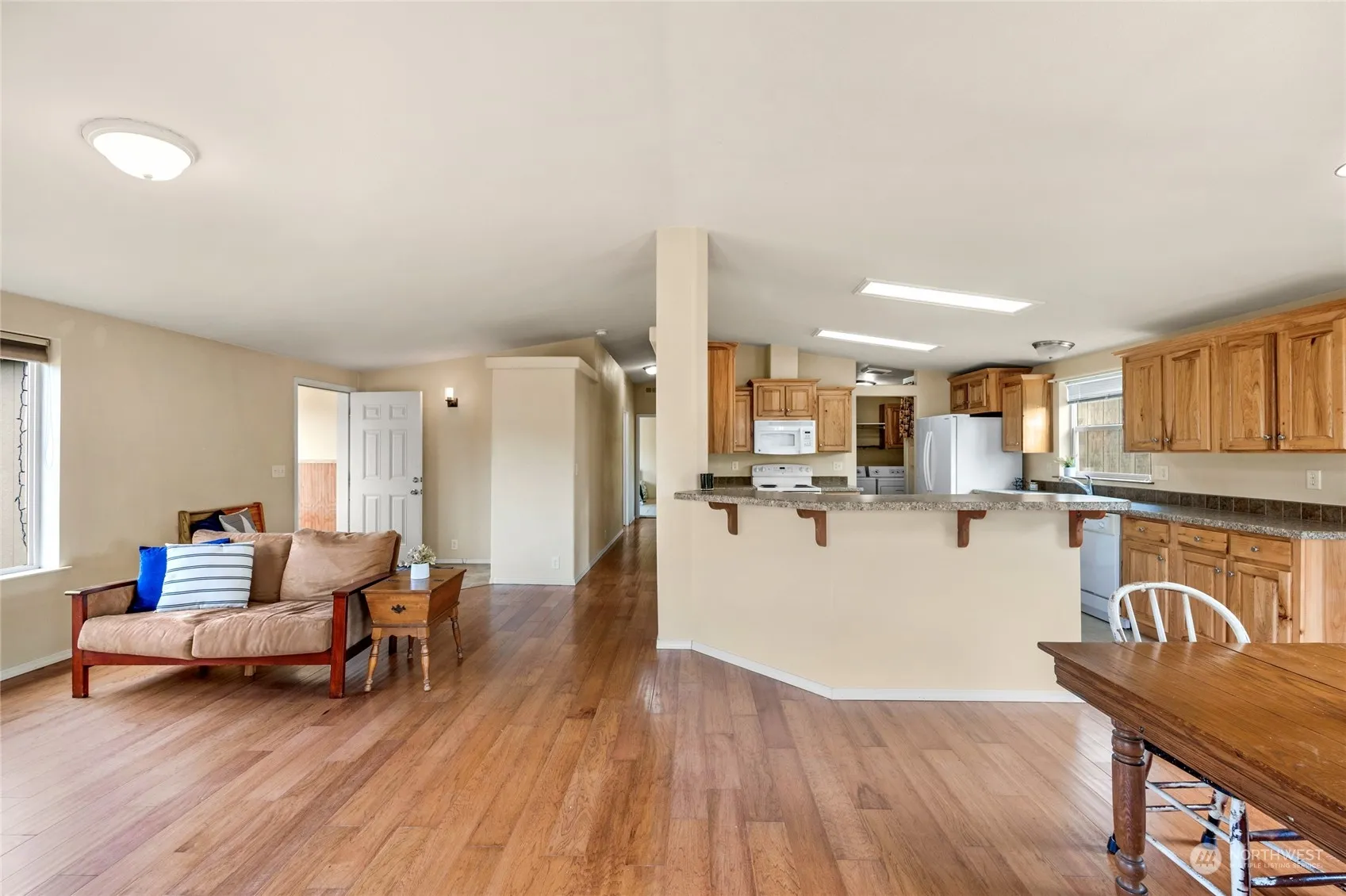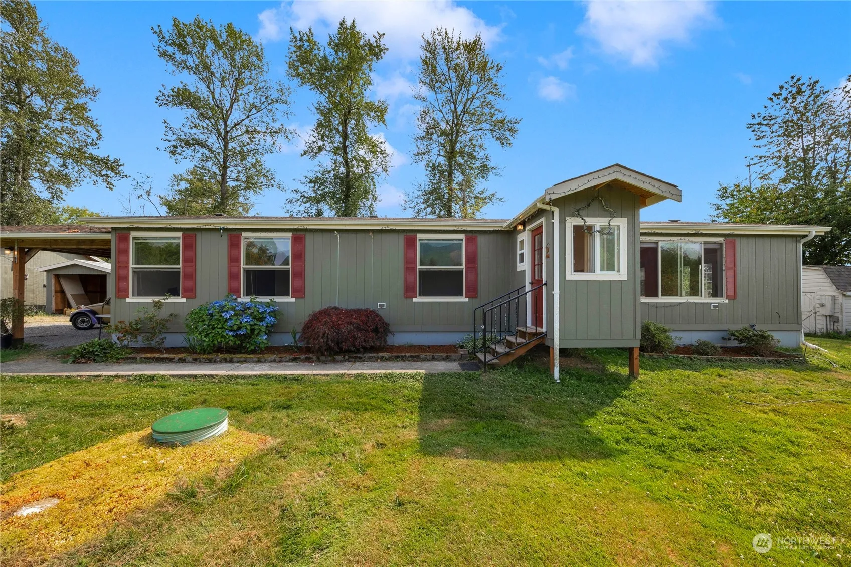 Welcome home to country living at its best in this light, bright, 3 bed, 1.75 bath home on 2.45 acres! Vaulted ceilings lead you to an open great room featuring a huge kitchen, complete w/ eating bar & tons of storage, dining & living room w/ oversized picture windows that showcase the gorgeous mountain views, perfect for entertaining. Primary suite has attached bath w/ spacious walk-in shower & 2 walk in closets. Expansive yard has room for animals or a garden or both! 864 sq. ft. 3 car garage/shop with woodstove to keep warm while you work on those late-night projects or host a winter event! Additional outbuildings also include a carport, 2 garden sheds and 3, three-sided garages. Excellent potential for MIL. Look no further, this is it!