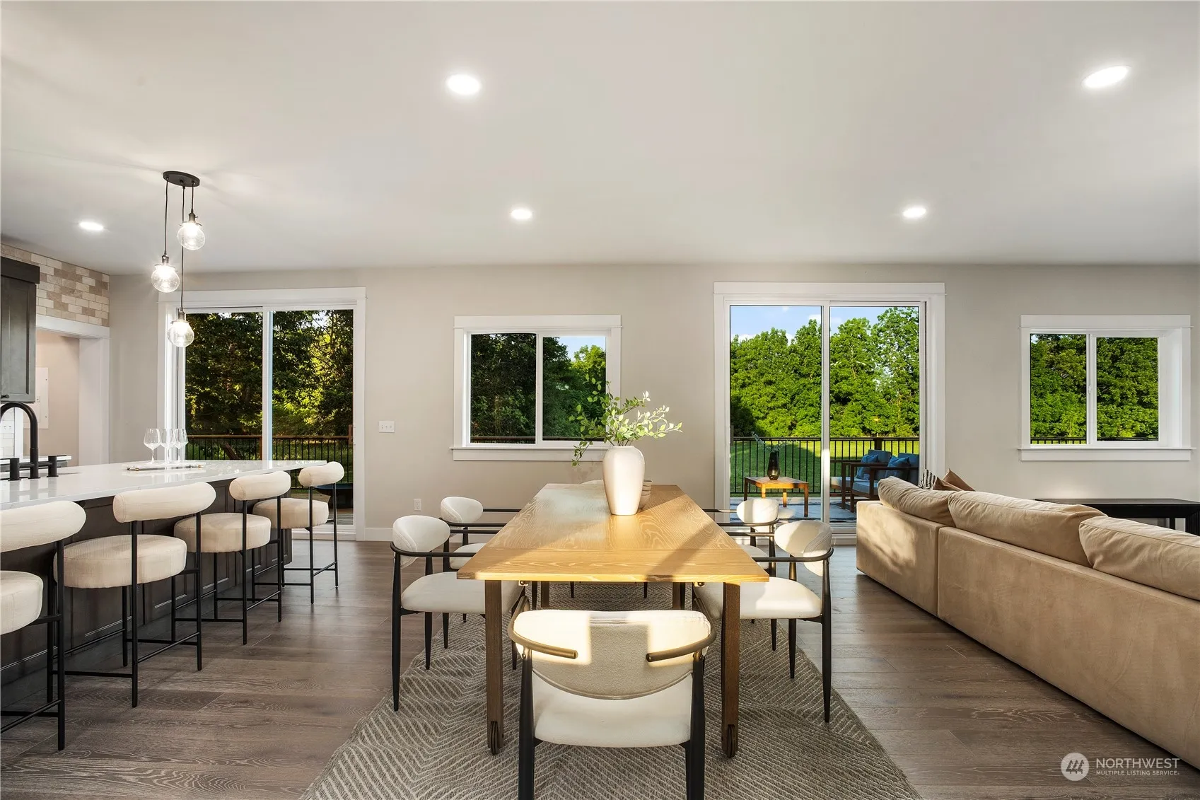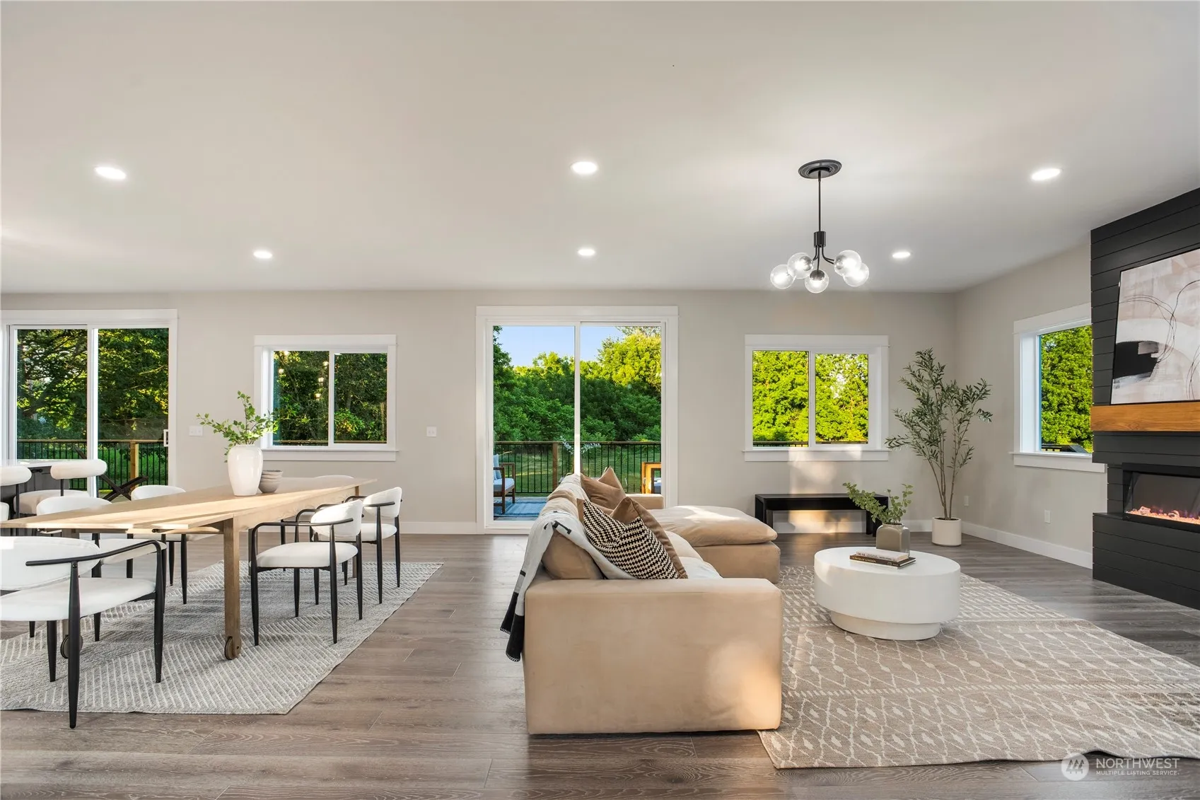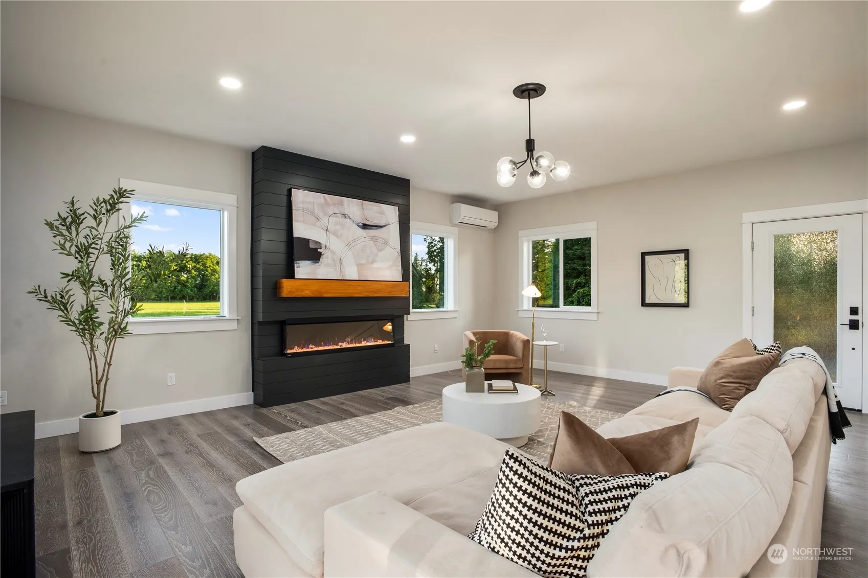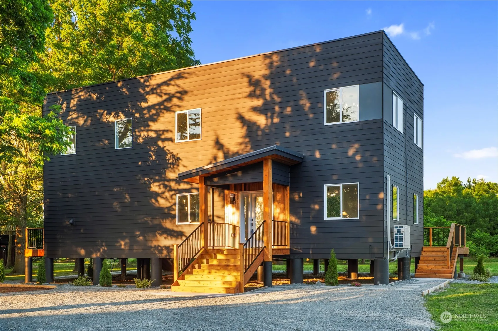 Discover a unique contemporary home on 13.5 acres with endless fruit trees, ideal for organic farming, private sports, venues and events. Featuring an open concept design, the heart of the home is a BERTAZZONI-equipped kitchen with custom backsplash, quartz countertops, and a walk-in pantry. Oversized doors lead to an expansive entertainment deck overlooking the private estate. This isn’t your average home; it boasts a unique layout, meticulous attention to detail, and panoramic windows capturing serene views. Enjoy rooftop access with a potential lookout deck and the opportunity to restore the original Stanwood Livery Stable. Immerse yourself in nature’s beauty through this luxury home with the charming taste of Stanwood.