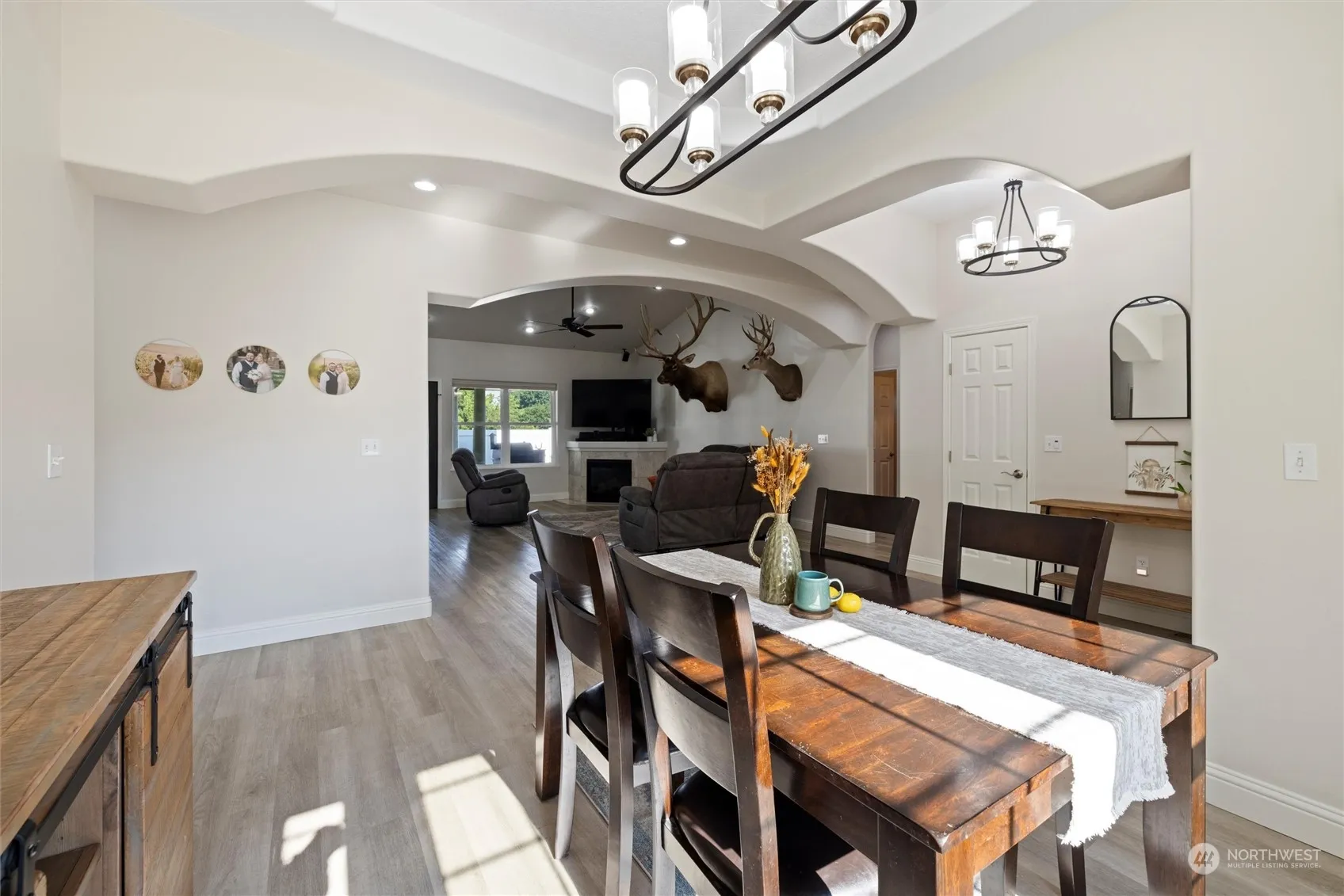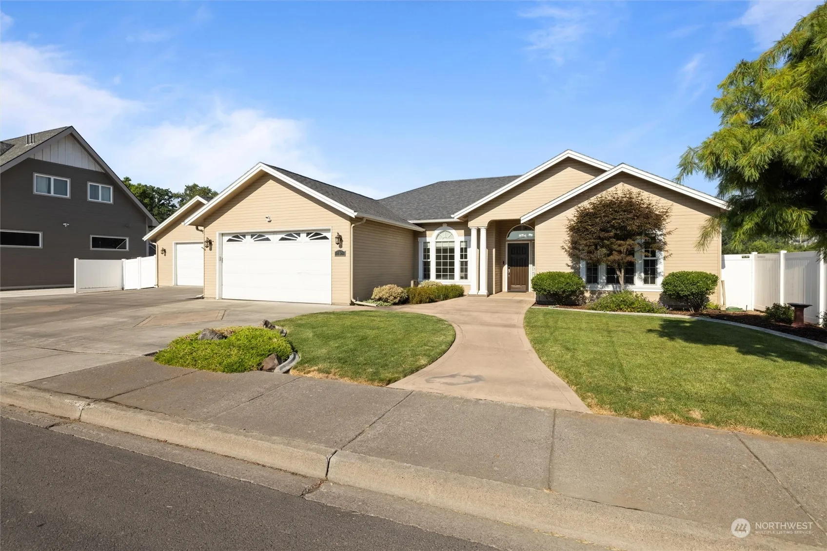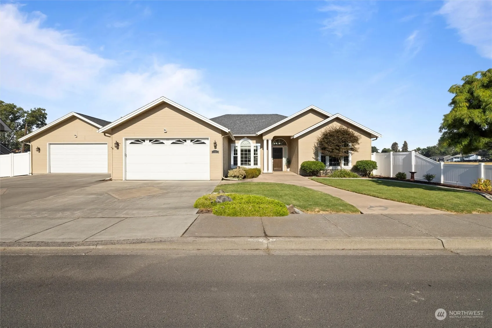 Welcome to this spacious single-level home w/ 4 bedrooms & 2 bathrooms in a convenient location near parks & schools. The updated kitchen boasts contemporary finishes, quartz countertops, stainless steel appliances w/ a gas range, perfect for any home chef. The great room features a vaulted ceiling & gas fireplace. Fresh interior paint, new flooring & updated light fixtures too. The primary suite includes a large walk-in closet, dual sinks, soaking tub & step-in shower. Enjoy the privacy & security of a fenced backyard w/ established plantings & covered patio, ideal for outdoor activities & relaxation. With an attached 2 car garage, large 650 sq ft finished shop w/ heating/cooling & RV parking, there is room for all your toys. Welcome home!