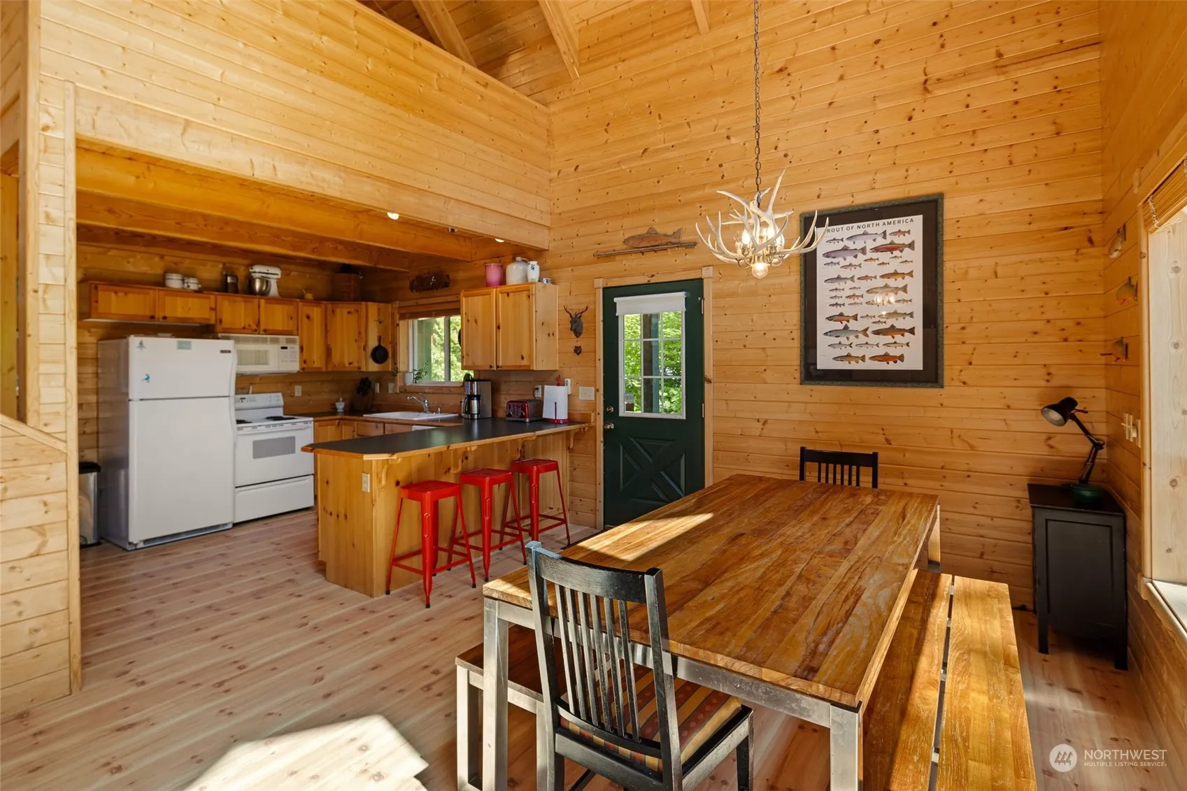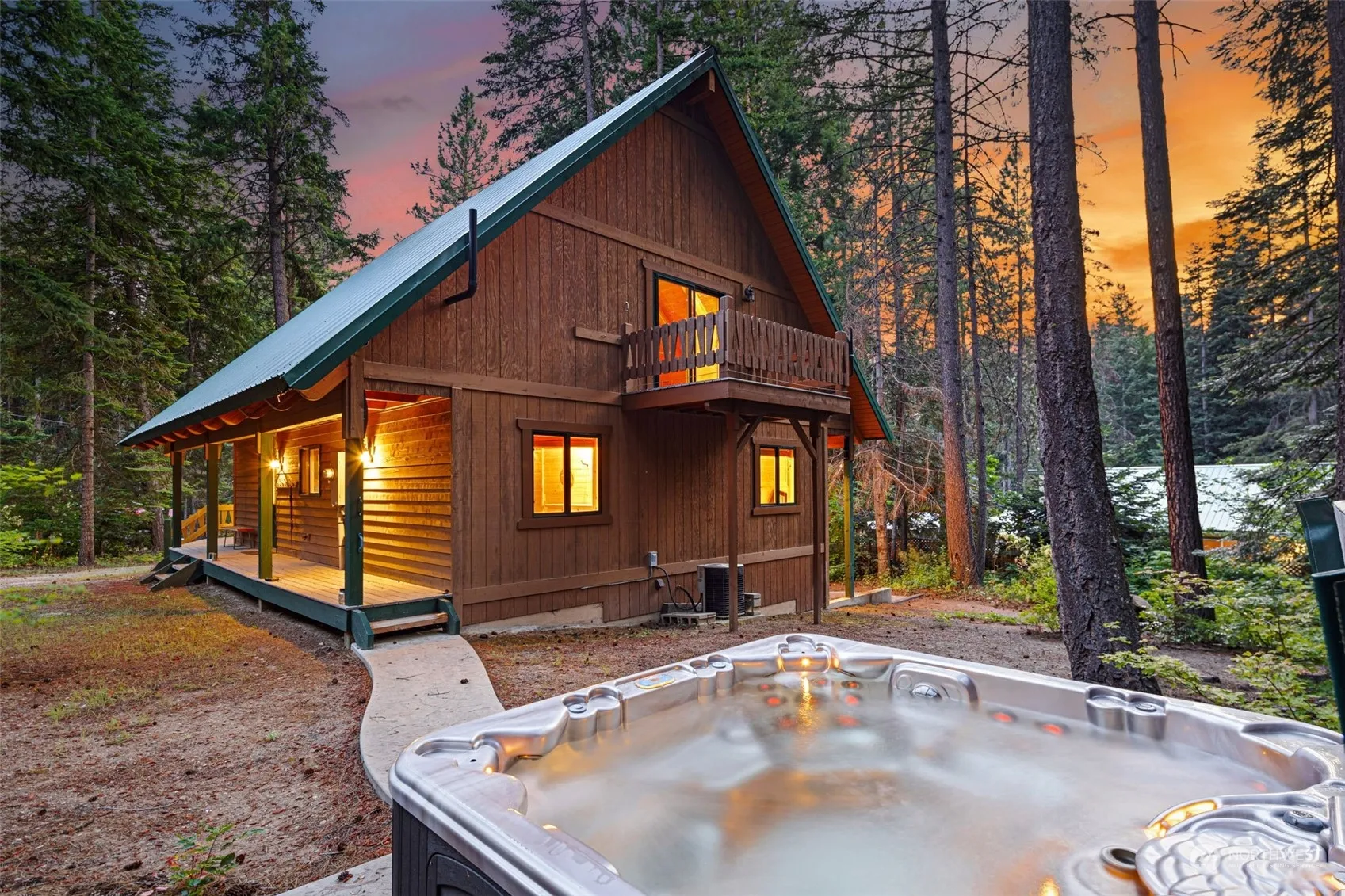 Ponderosa Custom Built Chalet ~ Secluded & private, this well-maintained cabin backs up to the greenbelt off Corral Street. Beautiful pine tongue & grove woodwork throughout, pine flooring, large beams, open kitchen/dining/living area & soaring cathedral ceiling. Enjoy the gas fireplace, the large wrap-around deck or the deck off the upstairs slider with great views. 2 bedroom/2 baths, the spacious loft includes built in shelving & a murphy bed for extra sleeping. A full basement offers storage for all your toys or shop space. Enjoy sledding out back, the large swing or sitting in the hot tub & enjoying the privacy & seclusion of this special cabin. Community pool, clubhouse, river access, trails & sport courts in this amazing community.