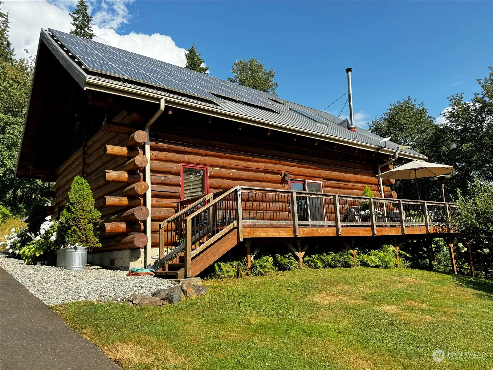 Drive across the countryside, enter through the gated entry & continue up a private driveway located on 5.47 acres surrounded by beautiful landscaping. Now, step inside this quality-built, spacious modern log home filled with natural light during the day from vaulted ceilings and skylights above. Bring out your inner chef skills in the kitchen filled with newer stainless steel appliances, including a Smart fridge. Relax & enjoy the quiet outdoors on the wrap-around deck with plenty of room for you and your guests. This home includes a private well, solar panels, propane tank & auto back-up generator.