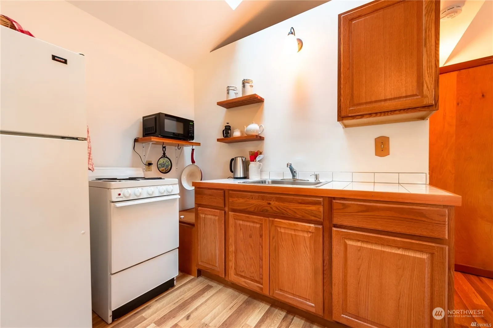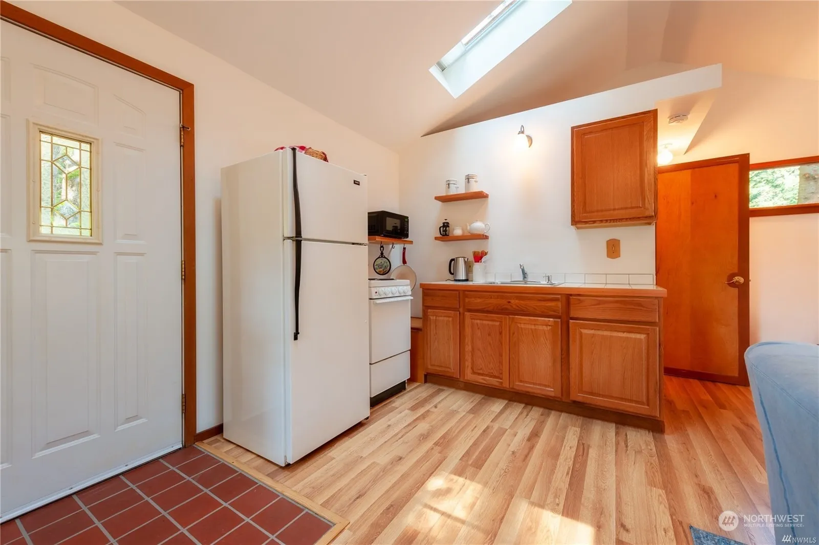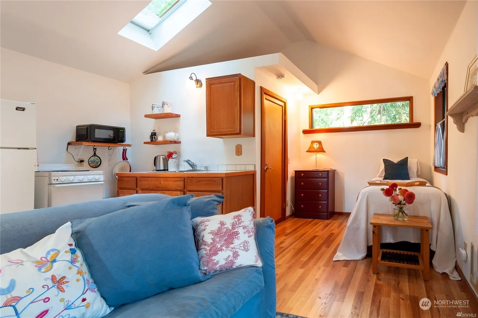 Immaculate, turn-key weekend getaway cabin! Fully furnished (down to the dishes), sleeps four with sofa bed. A writer’s retreat, a place of tranquility for creativity, a place to sail, swim & hike- you’ve found it. Excellent investment opportunity with a two bd. septic so you can expand on this large 1/3 of an acre lot. Easy-care gorgeous no-mow native landscape & a short walk to the swimming lake, boat launch & beach, a great location! A classic style featuring a wrap-around porch, high open ceilings w/ skylights, garden window & clean lines throughout. You will be impressed by the love & care that shine through! The lower level includes a laundry room, workspace, and storage for your kayak & outdoor equipment—simple living at its finest.