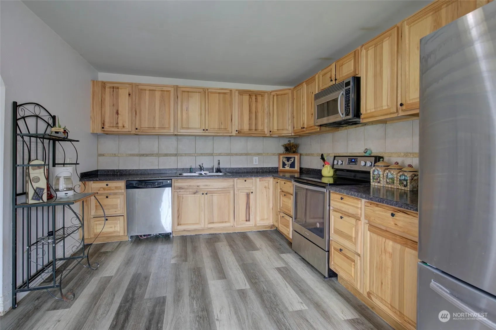 Come see this corner lot home with a fully fenced yard. Cute 2 bedroom, 2 bath home with one of the bedrooms and bath on the main level. Stay cozy in the winter with a great gas stove in the bright and airy living room. The upstairs features a bathroom, bedroom and a flexible multiuse space. Huge kitchen with enough storage to hold all the stuff you need to prepare like a chef! Singe car garage with additional off street parking. Come see this comfortable home today.
