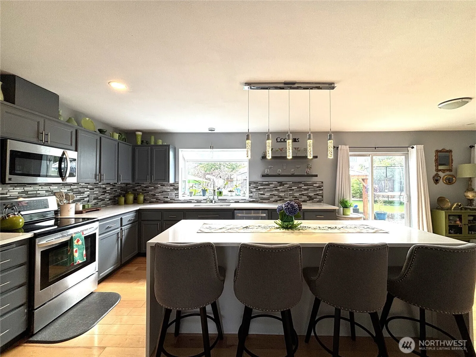Welcome home to this relaxing retreat in Orting’s coveted Rivers Edge neighborhood. Step into comfort & style in this inviting 4-bedroom home perfectly designed for modern living & relaxed lifestyle. Ideal for hosting friends, keeping an eye on little ones, or simply enjoying everyday life in style & convenience. Kitchen has stunning waterfall island seating 4-6 for any occasion, inviting gas fireplace in family room, flowing hardwood floors carry throughout main level into the back yard retreat with expansive patios, gazebo setup with 2-tvs for viewing your favorite games & shows. Don’t miss the pool & fully turfed yard, you will absolutely love your weekends NOT mowing, just relax & enjoy your beautiful retreat! Neighborhood parks too!
