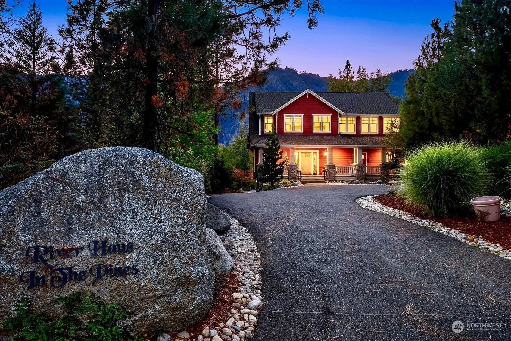 River Haus in the Pines on the Wenatchee River that includes a sandy beach and a great swimming hole. Enter to hardwood floors, large living room w/gas fireplace & access to the deck overlooking the River. Enjoy an inviting gourmet kitchen with large island/prep sink, butlers pantry & second living with propane fireplace, office/studio & access to deck. Upstairs ~ 4 ensuite bedrooms all with/private decks, views & full baths including coffee bar & Laundry (3 with gas fireplace). Lower level ~ a theater room, storage, bath & bedroom that allows access to Patio through sliding doors. Natural terraced landscaping, Traeger, Hot Tub, electric awnings, paved driveway, large 2 car garage Owner will entertain a contract at 5% interest.