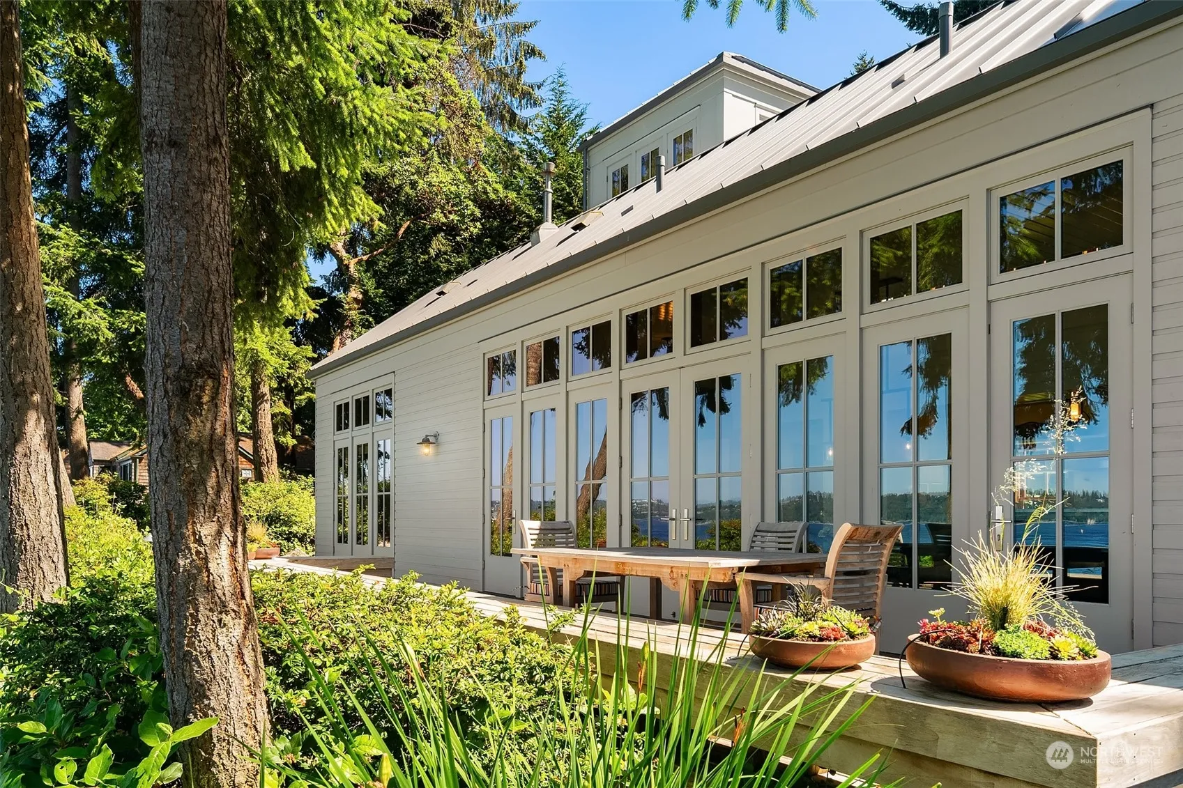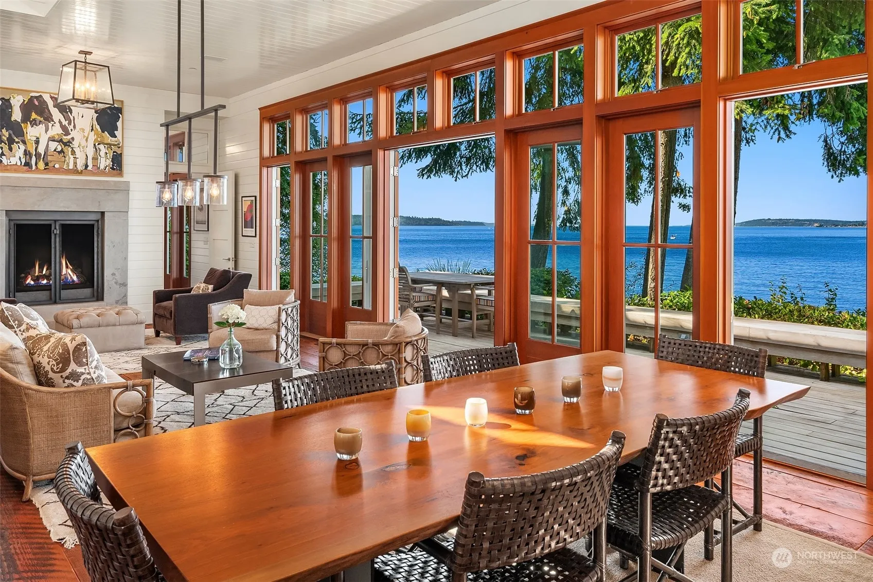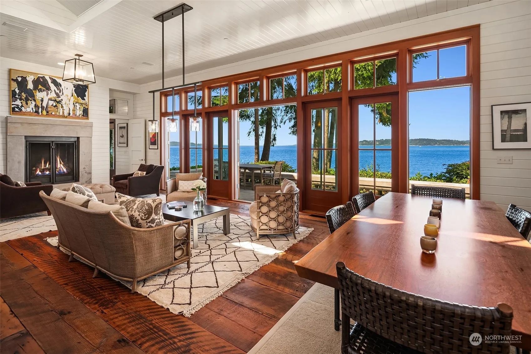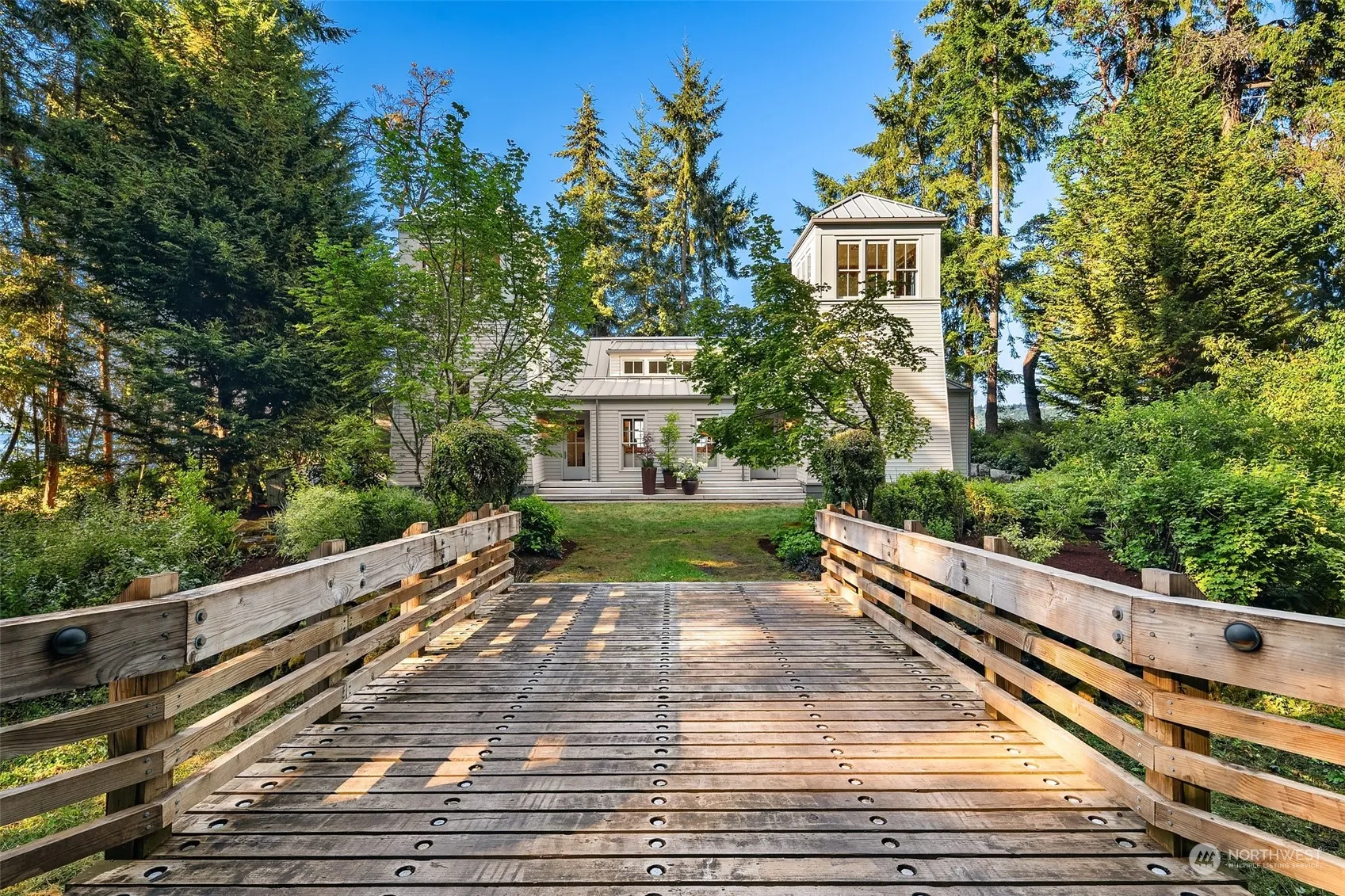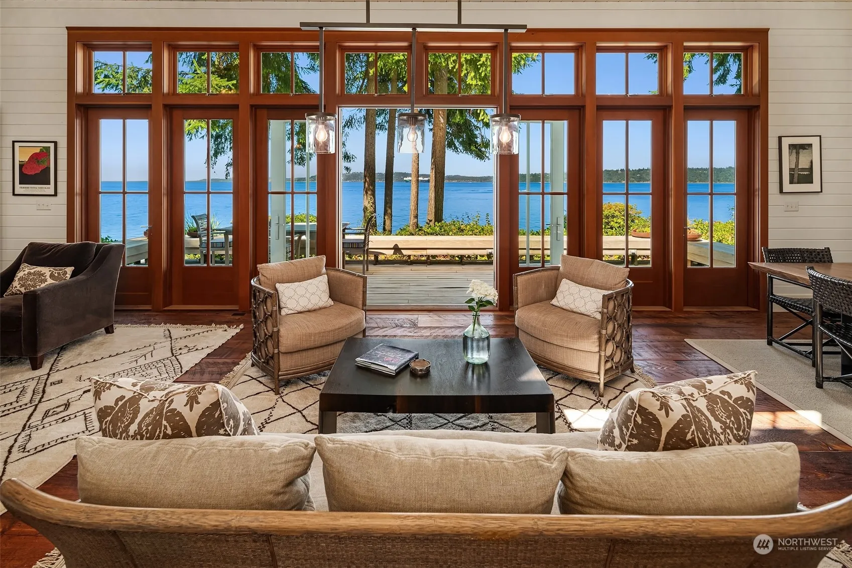 Bridge House is one of Vashon’s most beautiful & architecturally significant residences. Located on 175ft of pristine low bank frontage, the inspired rooms take in expansive vistas of the Sound with the Cascade and Olympic Mountains in the distance. Designed by Hoedemaker Pfeiffer, the careful use of beautiful materials, water catchment, and low VOC finishes render the house one of the first to achieve LEED Silver certification in the US. The home was built with the highest level of craftsmanship and durability which is obvious from the moment you cross the bridge. Twin towers that host guests with 360-degree views and private baths, two main-floor primary suites, and grand common living spaces are the epitome of Northwest waterfront luxury