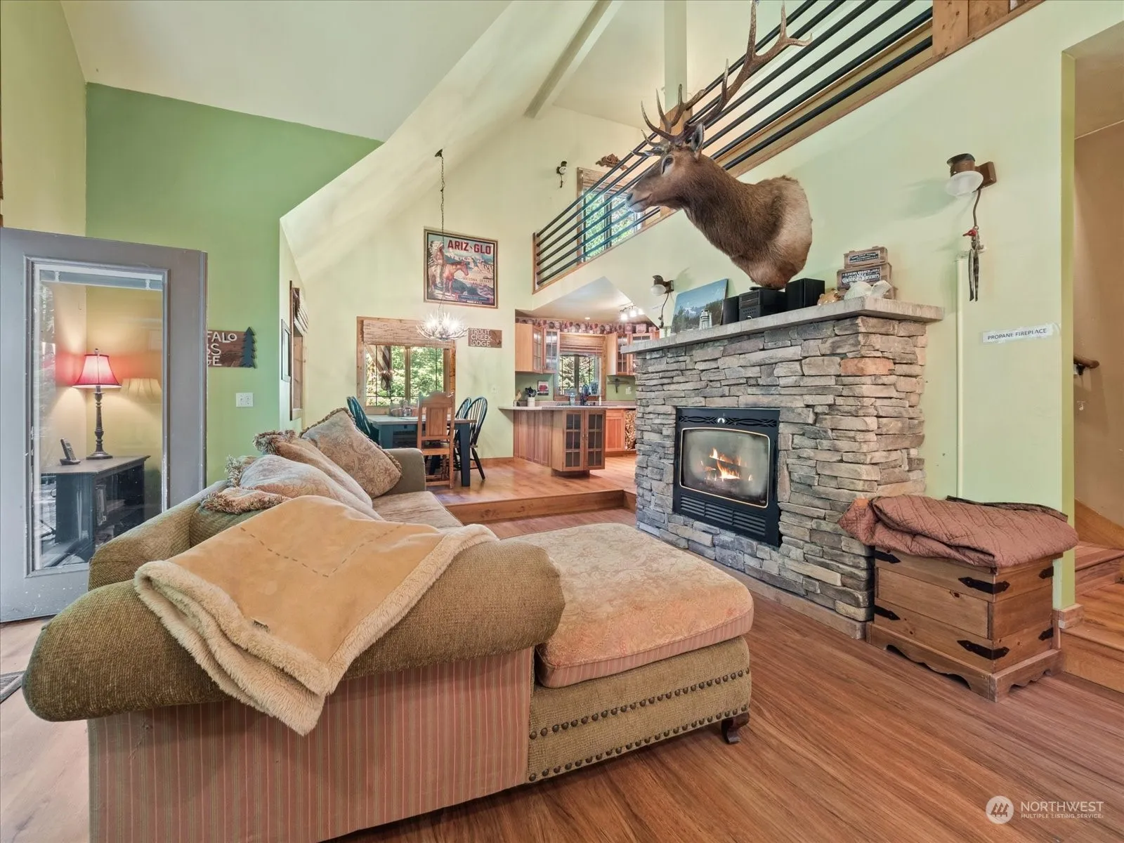 Nestled by the gentle curves of the serene North Fork of the Stillaguamish River, this charming log cabin exudes rustic elegance. Crafted from sturdy timbers, the cabin features a weathered, yet well-maintained exterior that blends seamlessly with the natural surroundings. Large windows provide stunning views of this extremely private and secuded 5+ acre parcel, while the spacious deck invites you to relax and soak in the tranquil ambiance. Inside, the cozy interior boasts a warm, inviting atmosphere with a stone fireplace, wooden beams, and plush furnishings, making it the perfect retreat for nature lovers seeking peace and solitude. Wildlife abounds in the surrounding woods – your very own private riverfront PNW retreat!