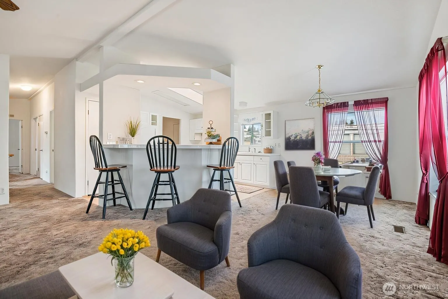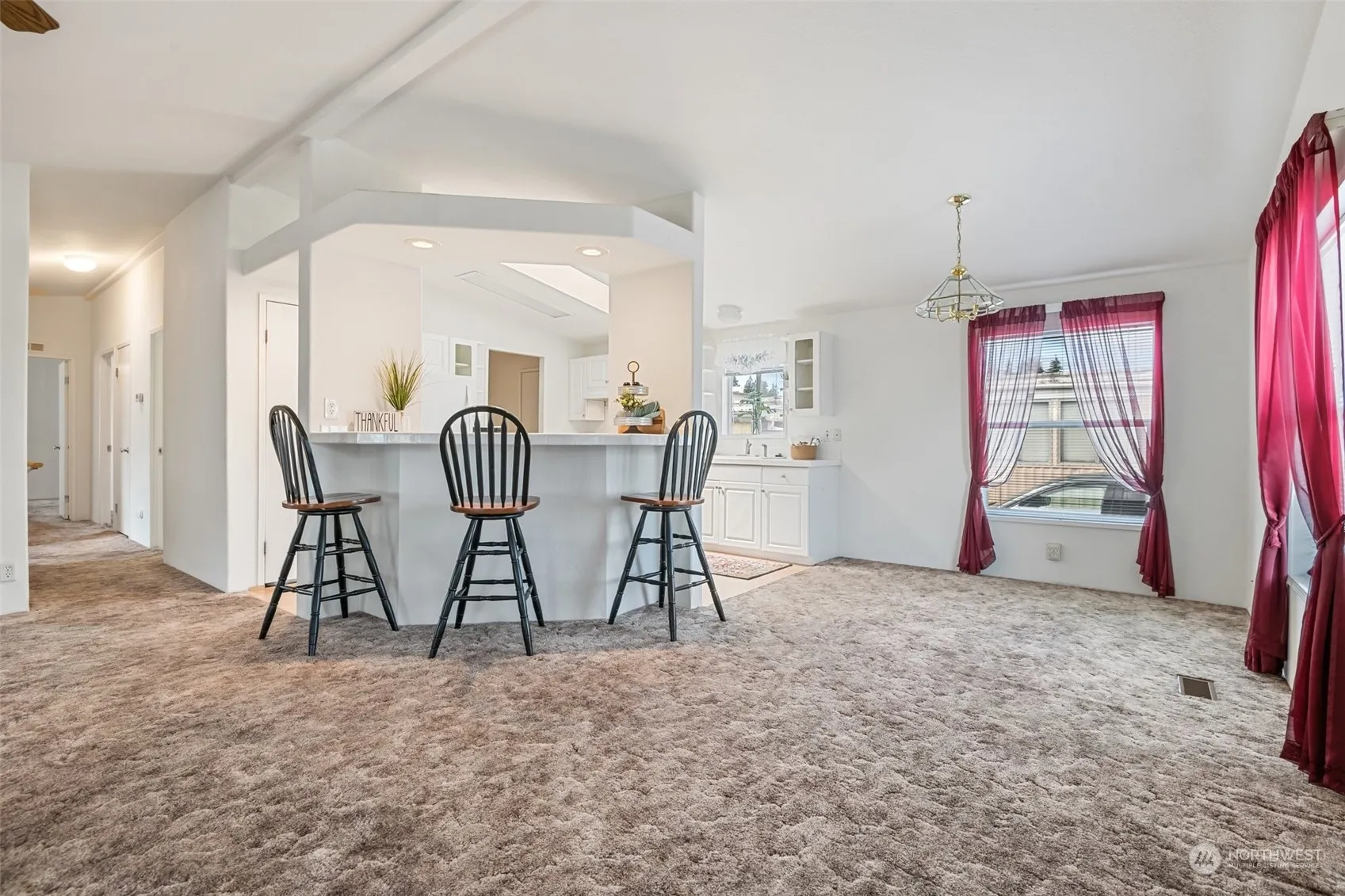 Great location and home in a 55+ park. Close to shopping, restaurants, and other amenities. Spacious living room, kitchen with appliances, eating bar & pantry, dining room. 2 bedrooms, office, 2 baths. Primary bedroom offers walk in closet, primary bath with separate shower and garden tub. Vaulted ceiling, skylights, heat pump, A/C. Carport & storage building. Do not miss this nice home in a quiet park located just minutes from I–5 access.