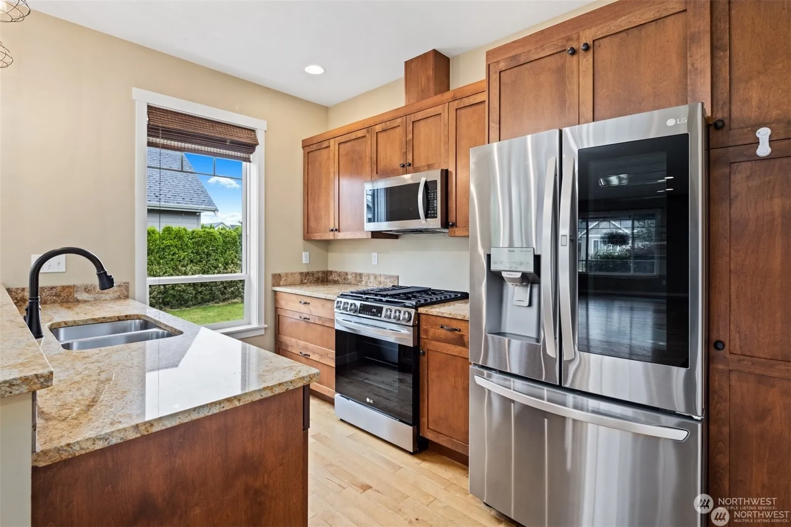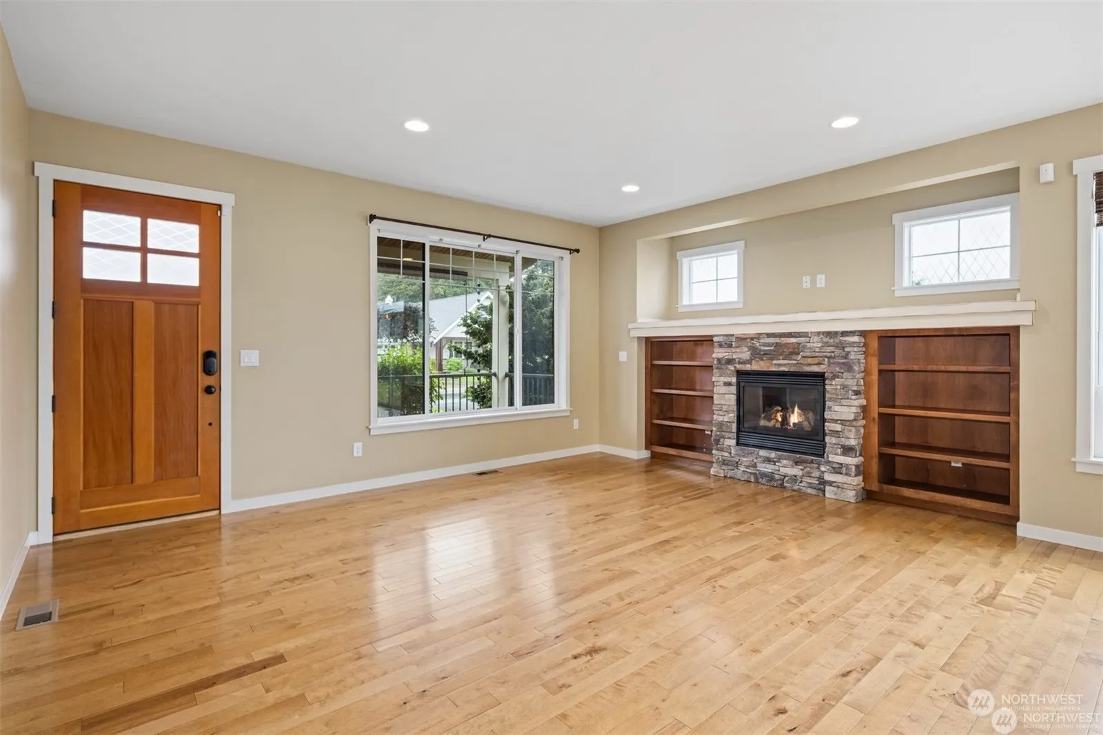 Wonderful four bedroom three bath home in excellent condition and beautifully updated. This Lynden Craftsman is stunning both inside and out. Large covered porch at the entry is inviting. Enjoy the open floor plan with hardwood floors, great fireplace surrounded with bookshelves and natural lighting. The kitchen has all new top of the line appliances. Step out to the oversized back/side yard and enjoy sun soaked privacy. There are two bedrooms on the main floor including the Primary suite with dual closets, bathroom with both a shower & tub. Other bedroom has 3/4 guest bath near. New Washer and dryer in mudroom leads to garage. Be sure to see the amazing new garage floor! Upstairs are 2 more large bedrooms, full bath & flex space. AC too!
