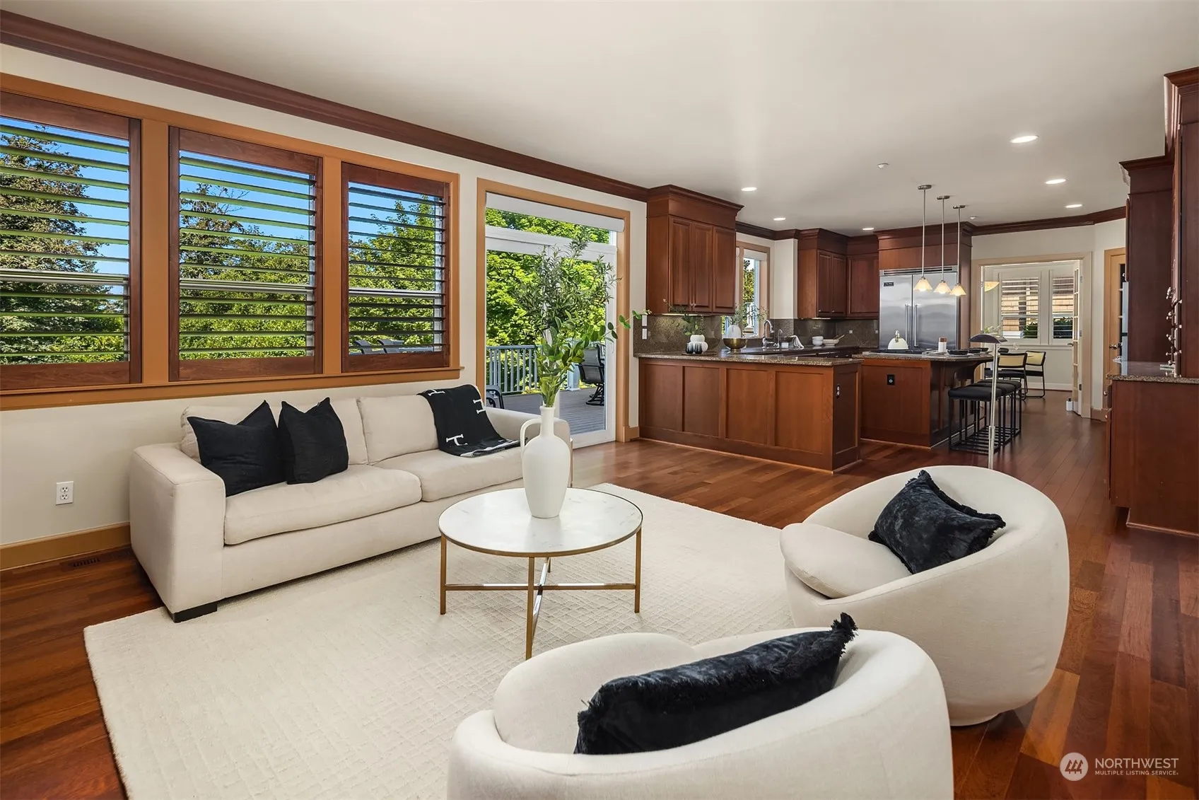 Welcome to Zenith & its vibrant Des Moines marina lifestyle w/Saltaire gated community & this spacious Nantucket home filled w/natural light & modern comforts. Located at the end of the drive, the property offers room to play & entertain both inside & outside. Step in the inviting foyer which flows into the open living areas combining living room, chef’s kitchen, breakfast room & large deck overlooking the grounds. Upstairs, a bedroom for everyone including the very private primary suite enjoying large walk-in & fireplace + 2 additional bedrooms w/great closet space. The garden level opens onto patio & sprawling lawn & is the perfect place for fun & guests: media room, rec room, bedroom & huge storage. The perfect home to create memories.