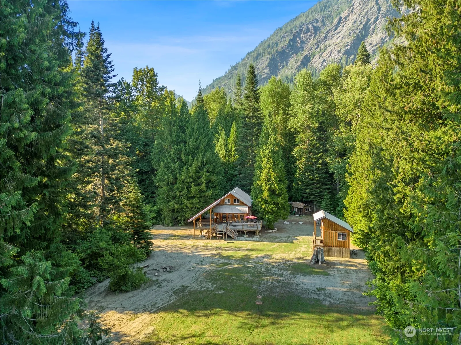 Welcome to Far and Away, a charming log cabin and Permitted Vacation Rental nestled on a one-of -a kind 5 acre riverfront property along the White River. This enchanting retreat features an enormous private beach with nothing insight except nature, breathtaking mountain views, and ancient old-growth cedars. The open living main floor with a loft bedroom (3 queens) offers a cozy, inviting space, while the expansive deck, sun room, and hot tub provide the perfect spot for relaxation. Additional accommodations include a detached bunkhouse. Located just north of Lake Wenatchee, this serene retreat offers endless outdoor recreation opportunities right from the cabin. Very limited availability for viewing between rental guests so don’t miss out!