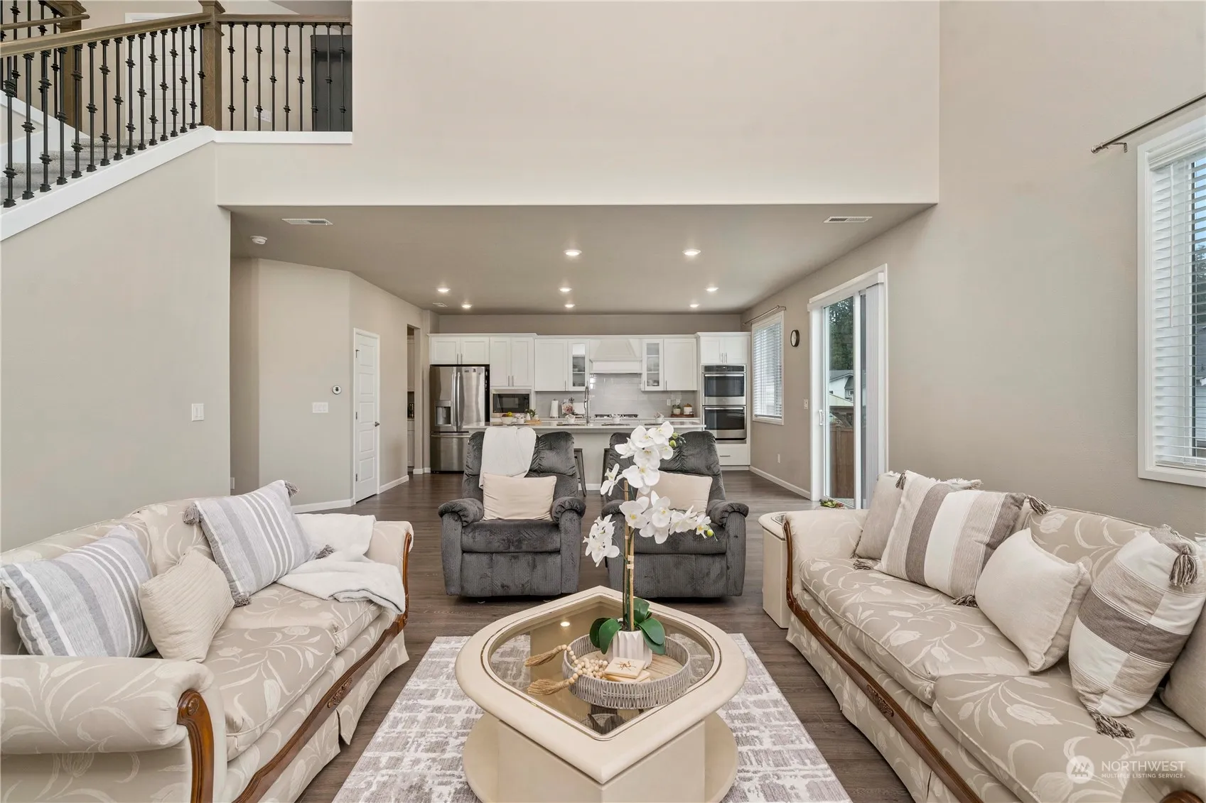 Discover this “better than new” view home in Maple Hills, featuring Lennar’s coveted Carnation floor plan. The stunning 2-story great room boasts walls of windows & cozy gas fireplace. Ideal for guests, the main floor offers a bedroom & full bath. The modern kitchen shines with white cabinetry, quartz counters, gas range with hood & a butler’s pantry. Luxury laminate wood flooring adds elegance throughout. Wrought iron staircase leads upstairs to a bonus loft, spacious laundry, and large bedrooms. The owner’s ensuite includes a 5-piece bath & walk-in closet. Enjoy a fully fenced backyard with concrete walkways, raised beds & a sprinkler system. Summer ready- A/C! The community offers parks, views & trail access to Cedar Park! Welcome home!