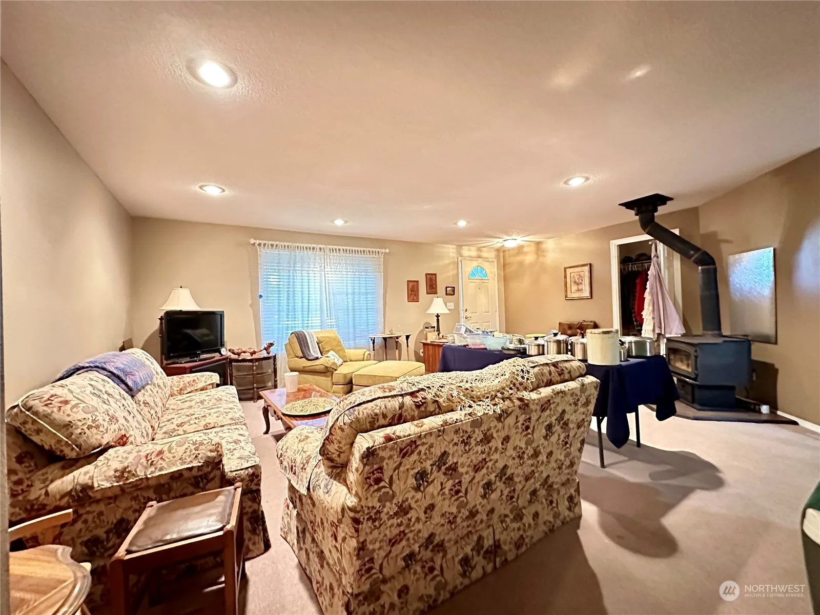 Step into this charming ranch-style home located on 1.5 acres, offering both comfort and convenience. Country living within minutes of shopping. This 1750 sqft home gives you the feeling of being in a much bigger space with its open floor plan and secluded landscape views. It boasts nice sized bedrooms with 3 baths. Cuddle around the wood stove on those cool winter nights plus enjoy the almost new furnace & heat pump. The home also includes a very spacious 3 car garage & RV parking. The outside grounds have tall cedars for shade, a fenced garden area & outbuildings