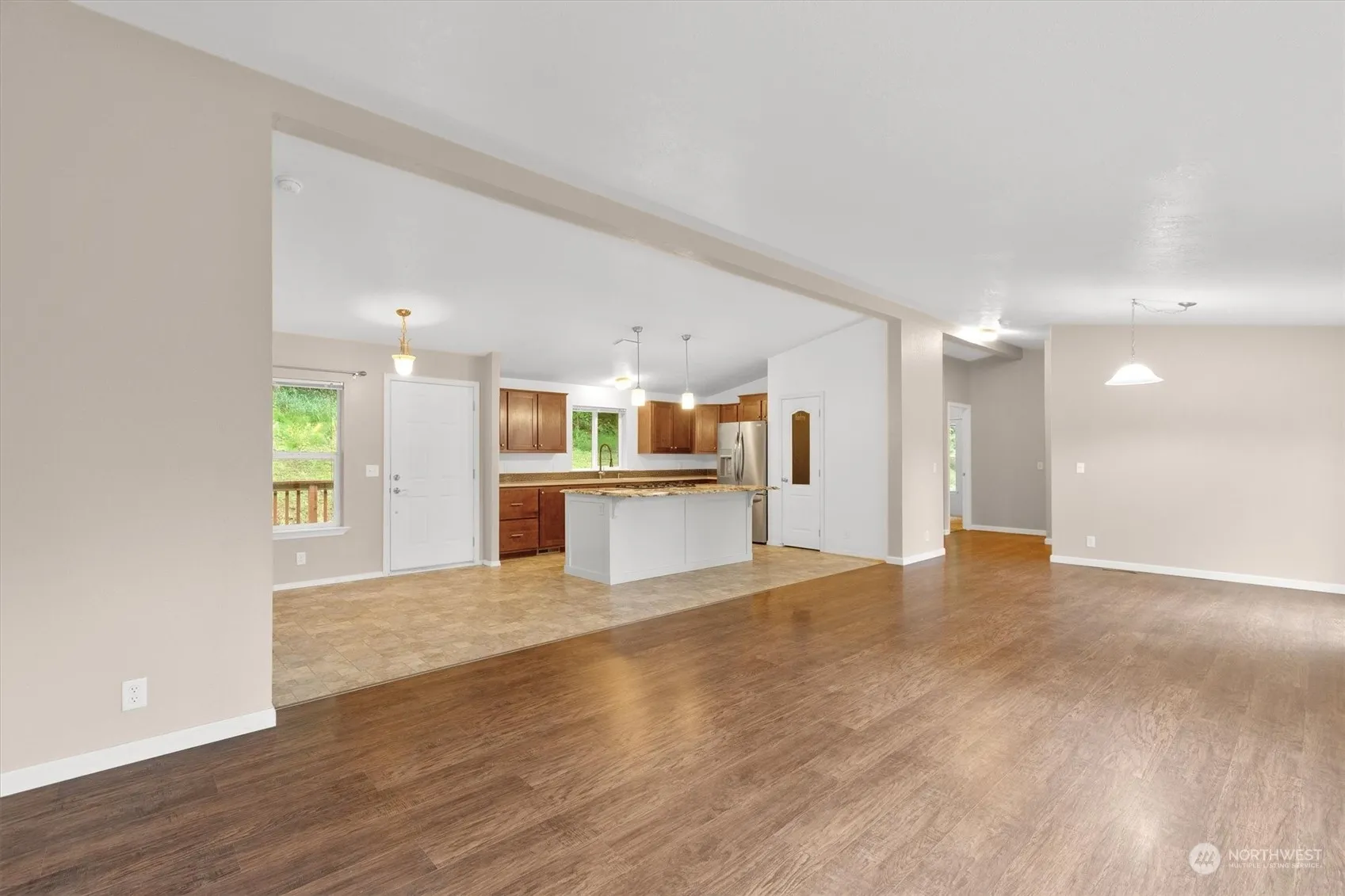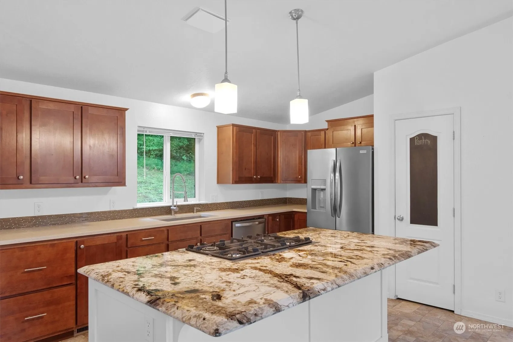 If you desire peace and seclusion to move about your property freely, this homes open floor plan with split bedroom, centrally located on a 10acre lot, well away from main road, surrounded by mature trees; offers just that. Relax on the deck, room for garden, build ATV trails but most importantly, Enjoy. Three outbuildings provide ample storage space they measure: 8×10, 10×20, 14×28. Roof replaced 2yrs ago, septic, well, stained deck, flooring, 2 filters one iron and one sediment. Solid surface stone counters throughout. Large walk-in closet, dual sinks in ensuite off primary. Oversized kitchen island, with 5 burner propane stove. Frigidaire fridge and dishwasher only 2yrs old are included. Wheelchair ramp can stay, if buyers would like.