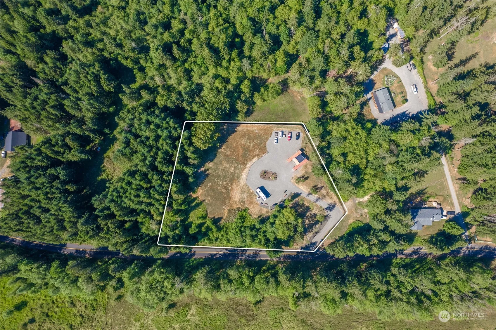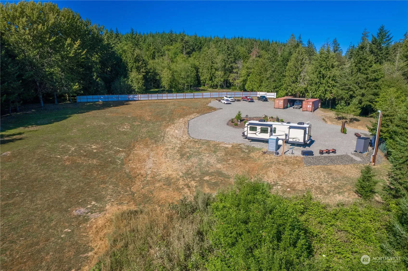 BACK ON MARKET! Property recently sailed right through feasibility! RARE chance to own build-ready acreage on Big Hanaford! Partially cleared, landscaped, & ready for your dream to begin. Want to live onsite while building? List price includes EVERYTHING on the property: 2020 36ft Full-Time living RV w/ washer + dryer & residential fridge, (2) 40ft containers w/ 110/220, etc! Enjoy daily wildlife & nature. The sweeping view & panoramic skyline is incredible! 3 bedroom septic design is complete & ready for submittal to county. Newer private well + electricity installed onsite. Well pumps impressive 20+ GPM! Ring Cameras + Starlink internet included! What are you waiting for? Your dream build can start ASAP!