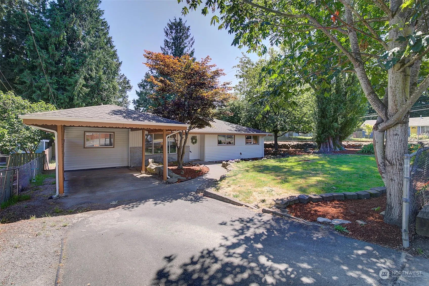 Large and sunny corner lot ~ fenced on sides & rear. Nicely sized deck, perfect for a good book or great BBQ. Storage shed so handy for so many uses. The home has been freshly painted throughout, and new carpeting installed. The extra finished room is a perfect in-home office, playroom, or TV room. Kitchen cabinets have been refreshed and look great! Come for a visit ~ this little charmer will not disappoint.