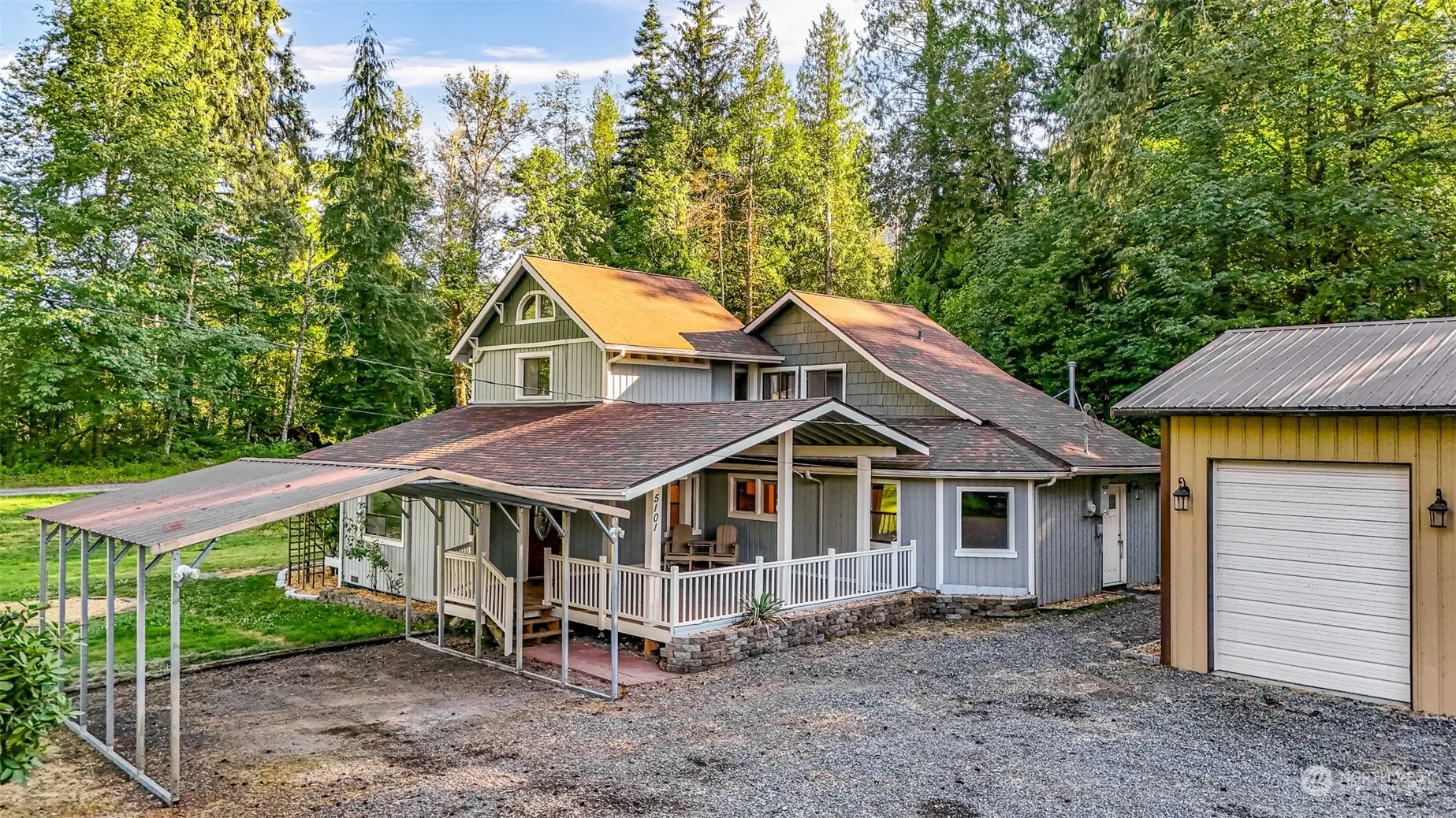 Country retreat on expansive grounds with a short trail to the Nooksack River. Just 20 minutes from Bellingham, and moments from Whatcom County’s renowned eagle-watching spot. This maintained home has numerous recent upgrades, such as a newly renovated primary bedroom, generator, tankless water heater, and mini split heating and cooling systems for year-round comfort. Huge 2 bay garage with workshop and pellet stove. New exterior paint and roof done in 2021. Featuring a spacious living area, the home includes two additional downstairs bedrooms and a versatile office/sunroom adjacent to the kitchen. Ample space for gardening and accommodating farm animals, with outbuildings offering limitless possibilities for vehicle storage or hobbies.