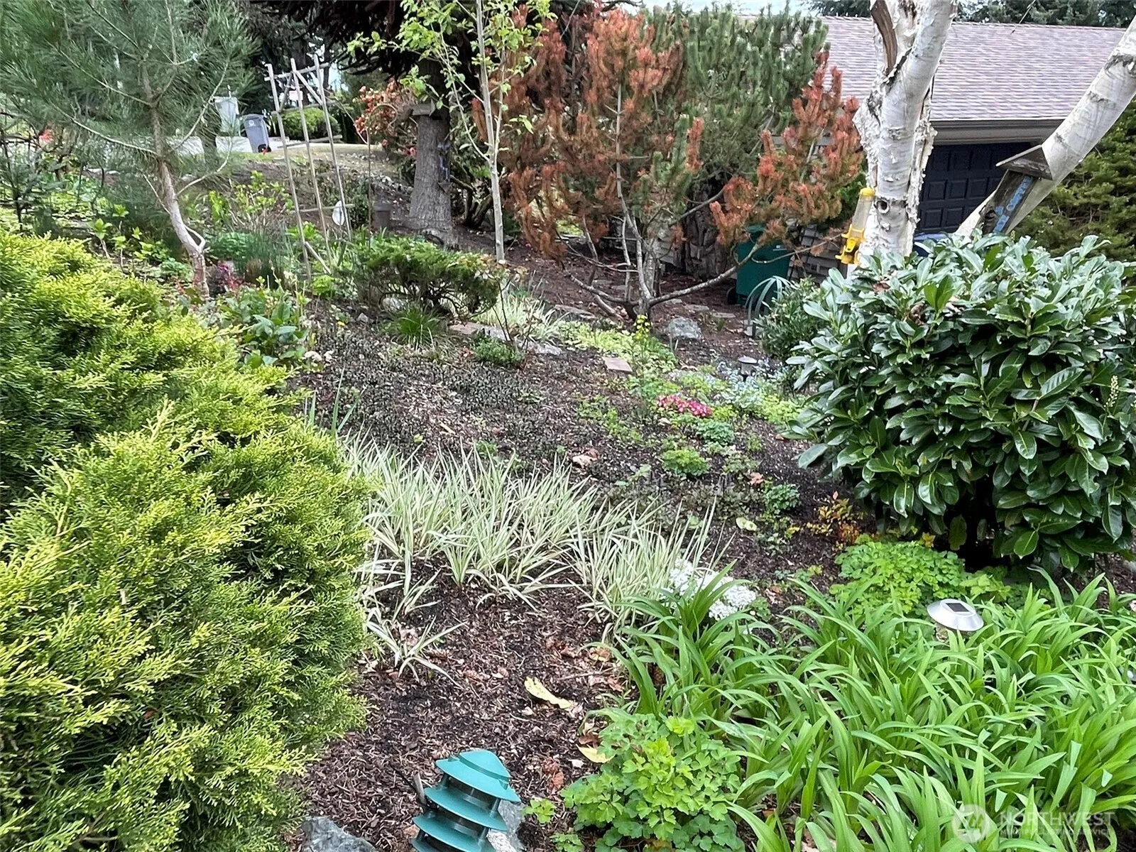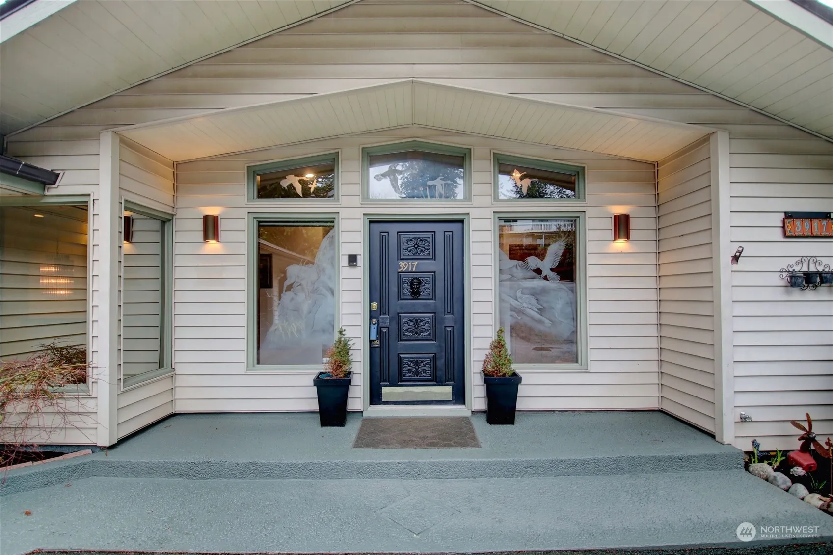 View of Fidalgo Bay and Mount Baker; beautifully remodeled kitchen with quartz countertops and stainless steel appliances; cul-de-sac with main level living and a fully finished lower level. Notice the custom etched art glass windows in the entryway signed by the artist. Two primary suites each w/walk-in closet, private balcony and attached bath. A mix of hardwood, Spanish tile and vinyl flooring, vaulted ceilings in main living area. Decks on upper & lower levels, extra space with a wet bar inside for simplicity in entertaining. Every window on the east side of the home has a fabulous view. Generous sized 2 car garage is wired for a generator; has workspace & storage.2022 new roof/updated pump for sewer. Just needs kitchenette for ADU.