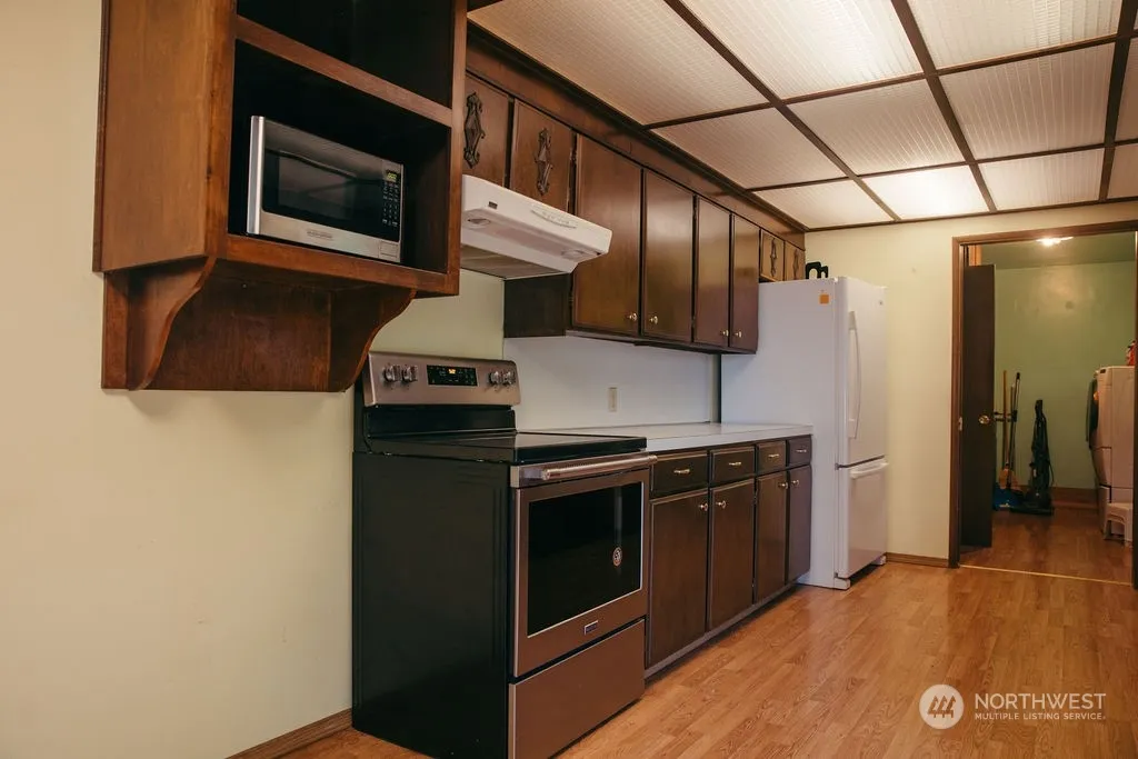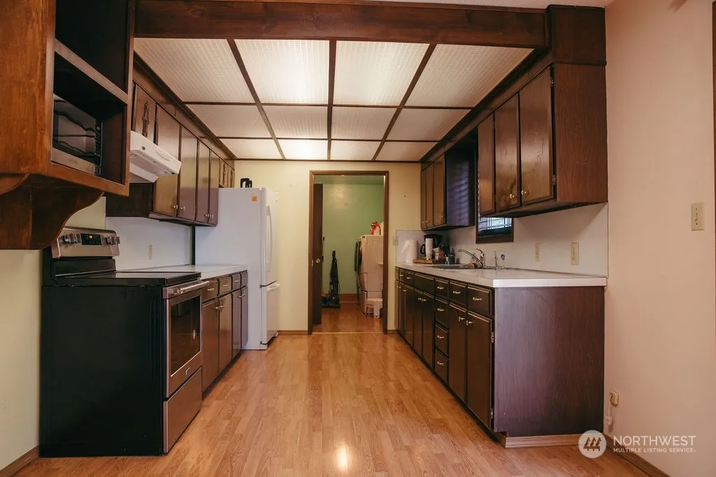This 4 bedroom, 3 bathroom home boasts a brand new snap lock metal roof, spacious layout with wood burning stove, massive primary suite with ensuite that includes a fully functional hot tub and new pool equipment, a finished and updated basement with 3/4 bathroom and fireplace; great spot for billiards table or multi-generational living. Situated on a corner lot with city water and sewer. *Lot lines will be adjusted Shop does not convey.