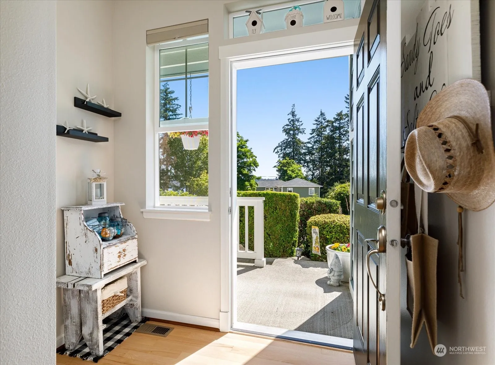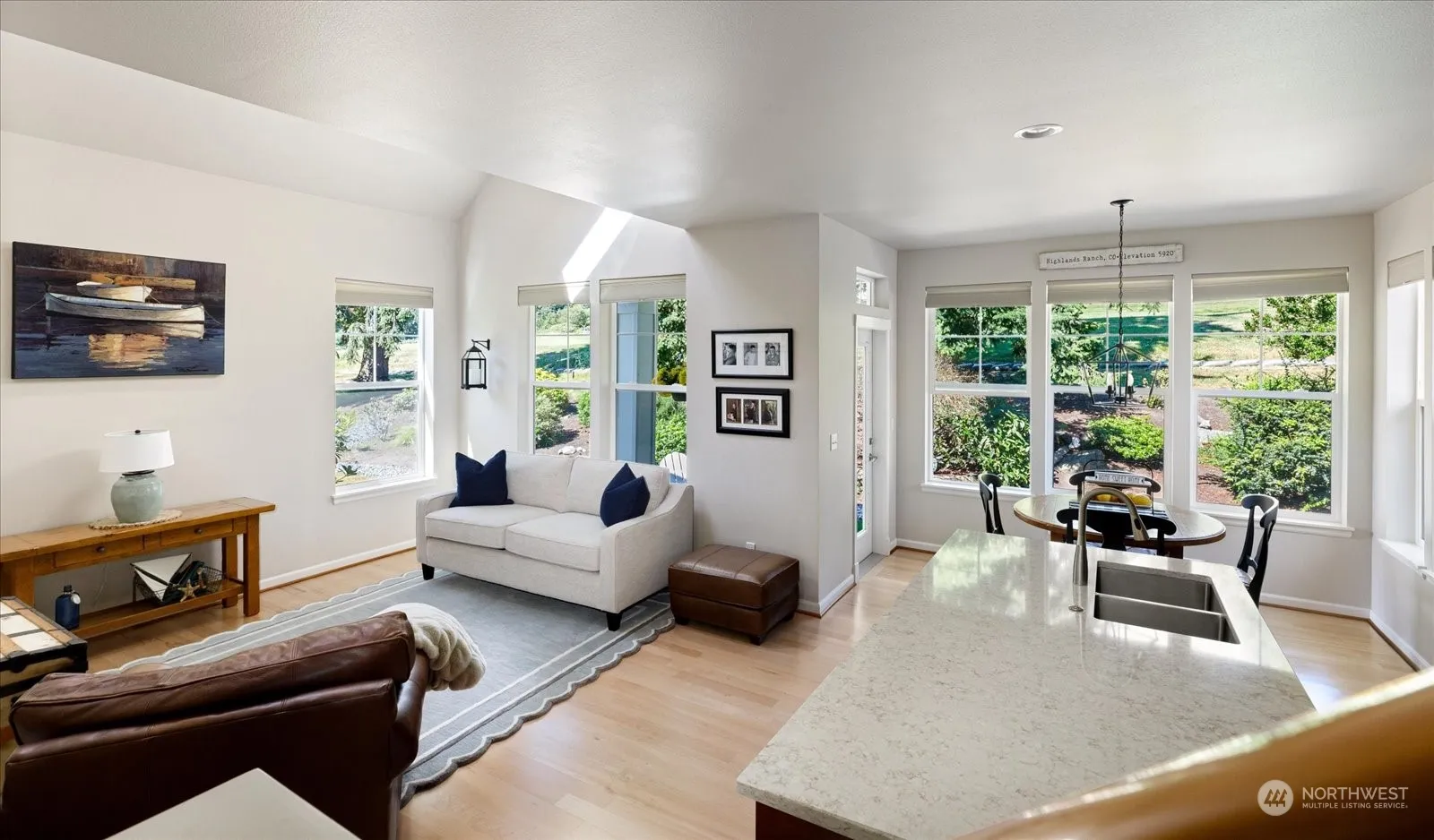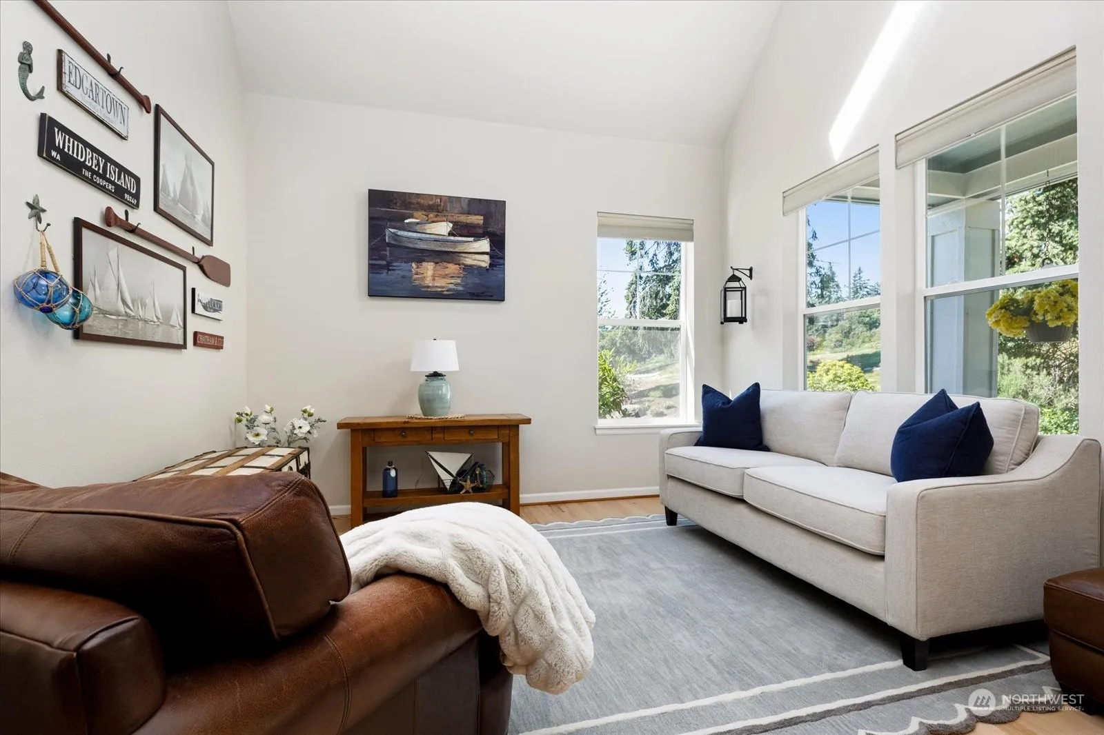 Experience the perfect blend of modern upgrades and charming craftsman style in this delightful bungalow at Holmes Harbor. With water views and a prime location, this home offers a serene island retreat. Recent renovations include new kitchen quartz countertops, stainless steel appliances, refinished wood floors, and updated paint inside and out. The primary suite on the main floor provides comfort, while the expansive loft offers versatile space for a studio, office, or guest area. Enjoy the convenience of HOA-covered landscaping, making this home ideal for snowbirds, weekenders, or full-time residents. Relax on the front porch, or entertain on the back patio adjacent to the golf course. Embrace the Whidbey lifestyle with ease and style!