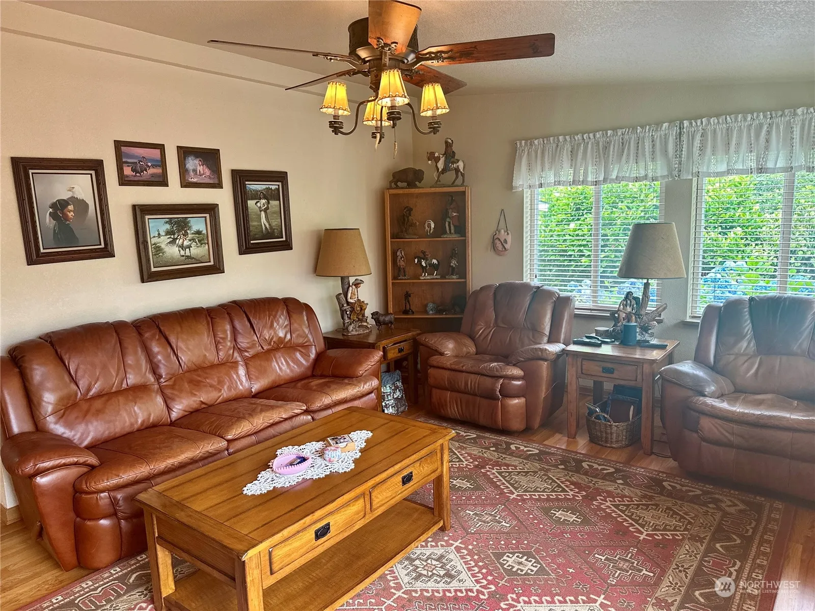 Welcome home! This beautifully maintained 3 bed 2 bath home features a spacious owner’s suite with sitting area & walk-in closet. Vaulted ceilings & skylights flood the home with natural light. Oak hardwoods, new hot water heater, AC, & ceiling fans add comfort & style. Kitchen with island & SS appliances that stay with the home! Utility room with refrigerator, sink & additional storage leads to the back deck. Enjoy outdoor living with the large deck, shaded gazebo, & sprinkler system on timers for mature landscaping. Dining room with lighted built-in shelving. A dedicated storage shed with electricity adds further convenience right off of carport. Don’t miss this opportunity to move into the exceptional 55+ Mountain View Estates community!