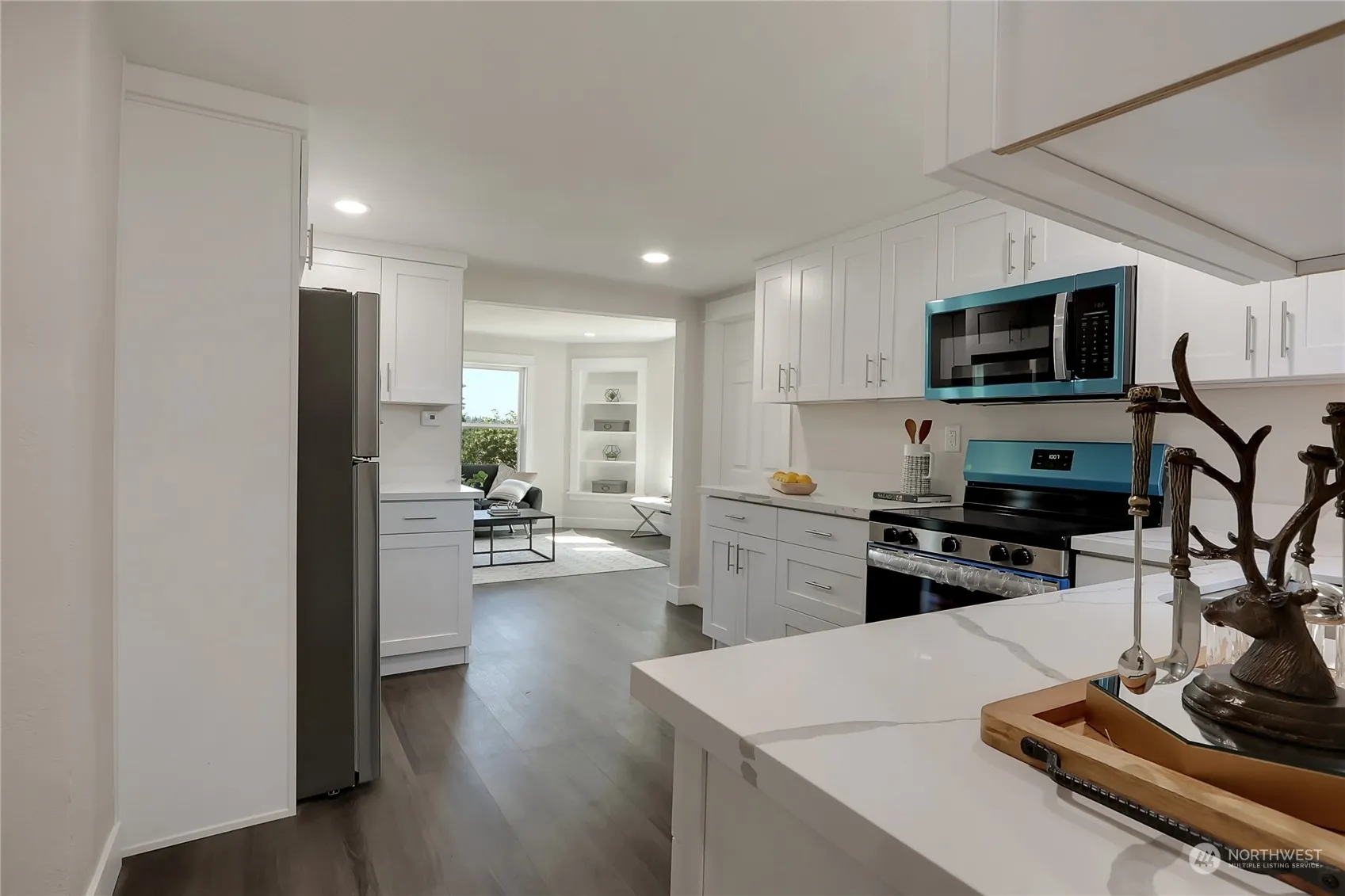 This elegantly updated 3-bedroom, 3-bathroom home offers breathtaking views of Mount Rainier and the Cascade Mountains. The thoughtfully designed floor plan features a spacious living room upon entry and a generously sized kitchen with ample storage. The main floor boasts a primary bedroom complete with two walk-in closets and an en-suite bathroom. The expansive upstairs loft includes an additional bedroom and private bathroom. The property also features a large back deck, a sizable yard, and a prime location with convenient access to freeways and local amenities.
