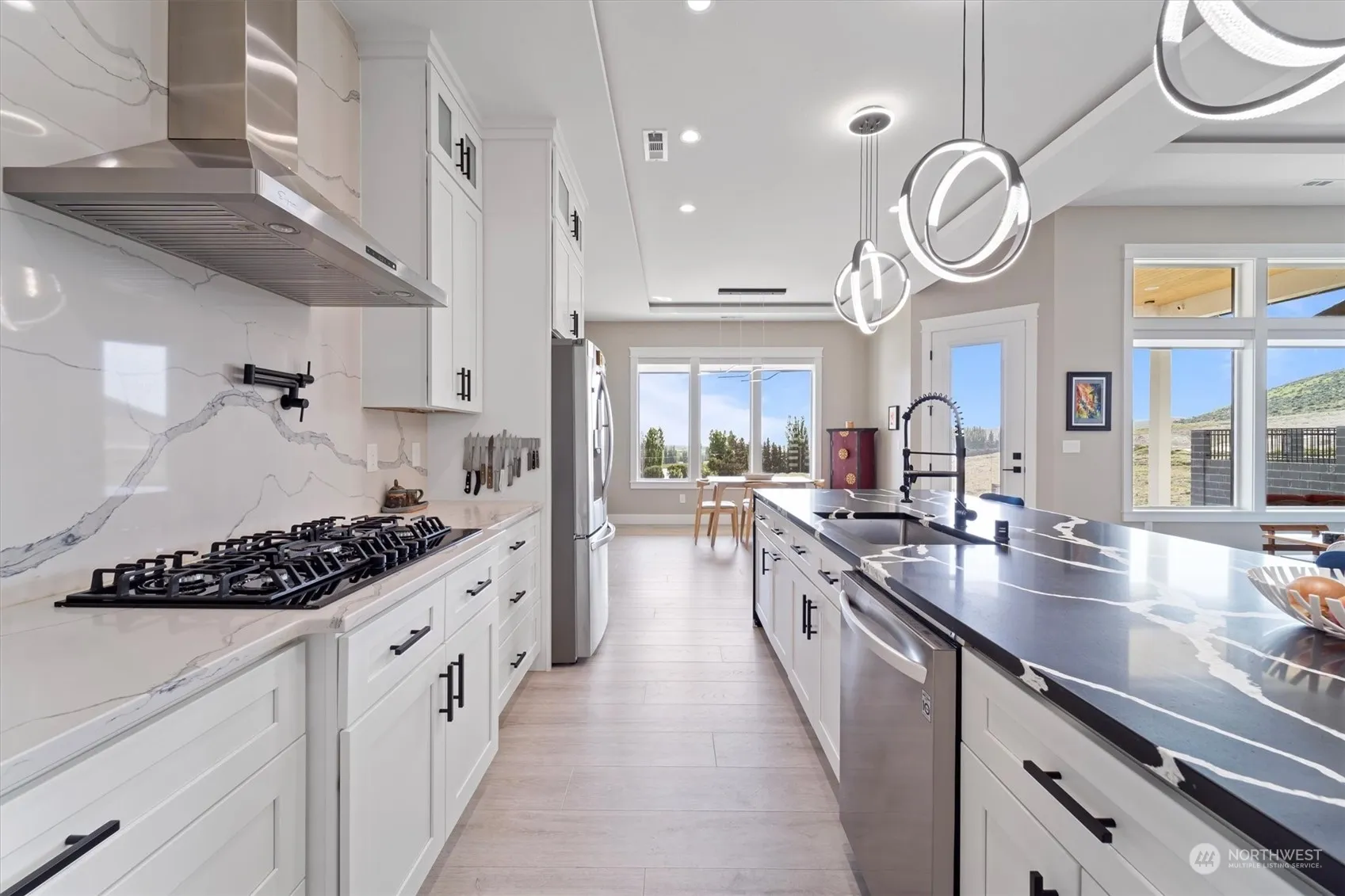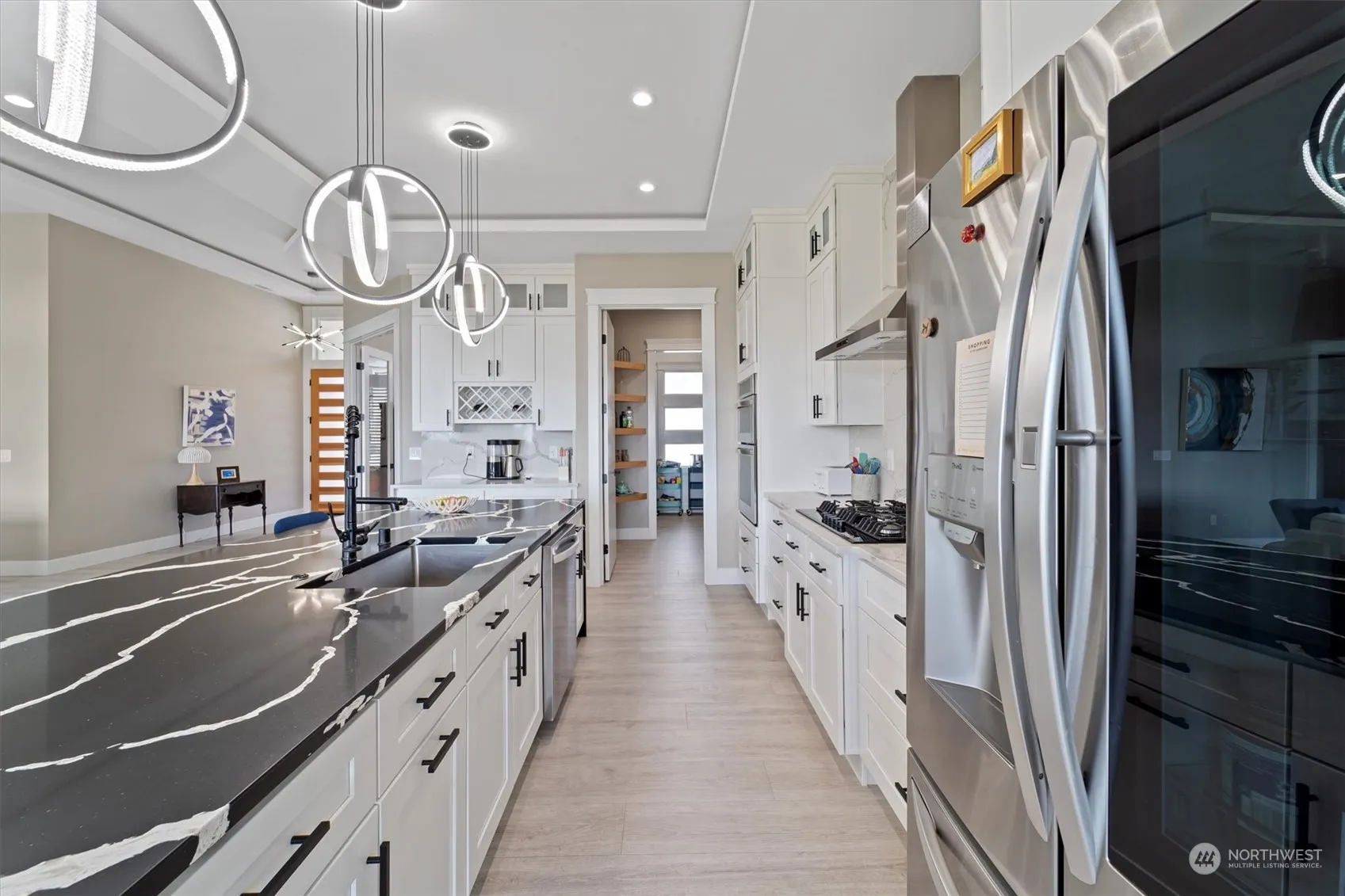 Custom construction offered $40,000 below recent appraisal. 2022 built home with many features only found in higher price points. Soaring custom tray ceilings and boasting 2758 sqft, 4 bedrooms, 4 baths, and an office. Open-concept chef’s kitchen with massive granite island waterfall edges, full granite backsplash, 5 burner gas stove, pot filler, coffee bar and large butler’s pantry with wine fridge and ss prep sink. Split bedroom design including a jr. suite and a separate office. Primary bedroom has private territorial views of orchards, the Columbia River and the Blue Mountains. ensuite with soaking tub, large glass shower, dual vessel sinks and floor-to-ceiling granite tile. Walk-in closet is thoughtfully connected to the laundry room.