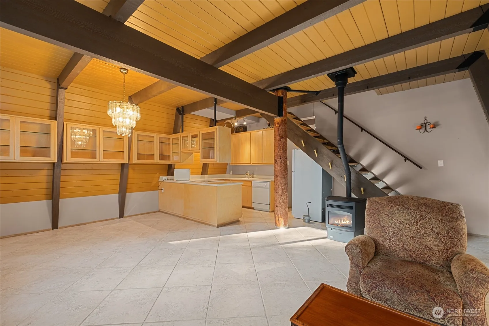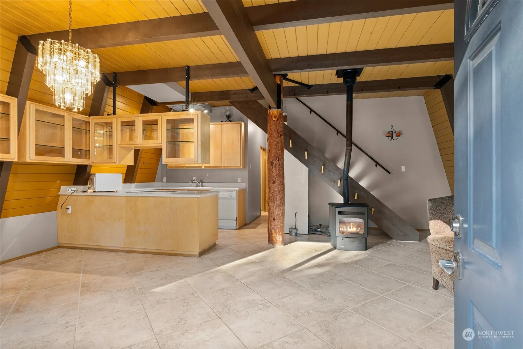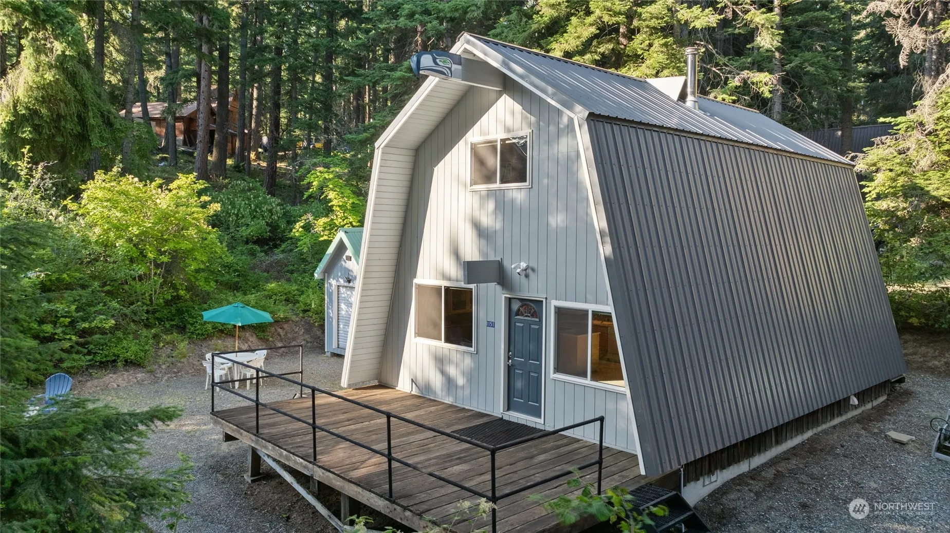 Fantastic vacation getaway in the mountains with Lake Cle Elum nearby. Expanded A frame style chalet features exposed beams, tongue & groove walls, & pellet stove, lending an authentic cabin feel. Open floor plan with living area, full bath, laundry & bonus sleeping room on the main floor. Two bedrooms upstairs, each with vaulted ceilings and another bath. The well-maintained yard is ready for entertaining with a large deck, firepit, & ample parking. Mature evergreens and native landscaping offer a secluded feel to this rare, usable, level lot with room to park your RV or toy trailers. Pineloch sun membership includes use of the lodge, sports courts, & seasonal pool on Lake Cle Elum with access to miles of trails from your doorstep.