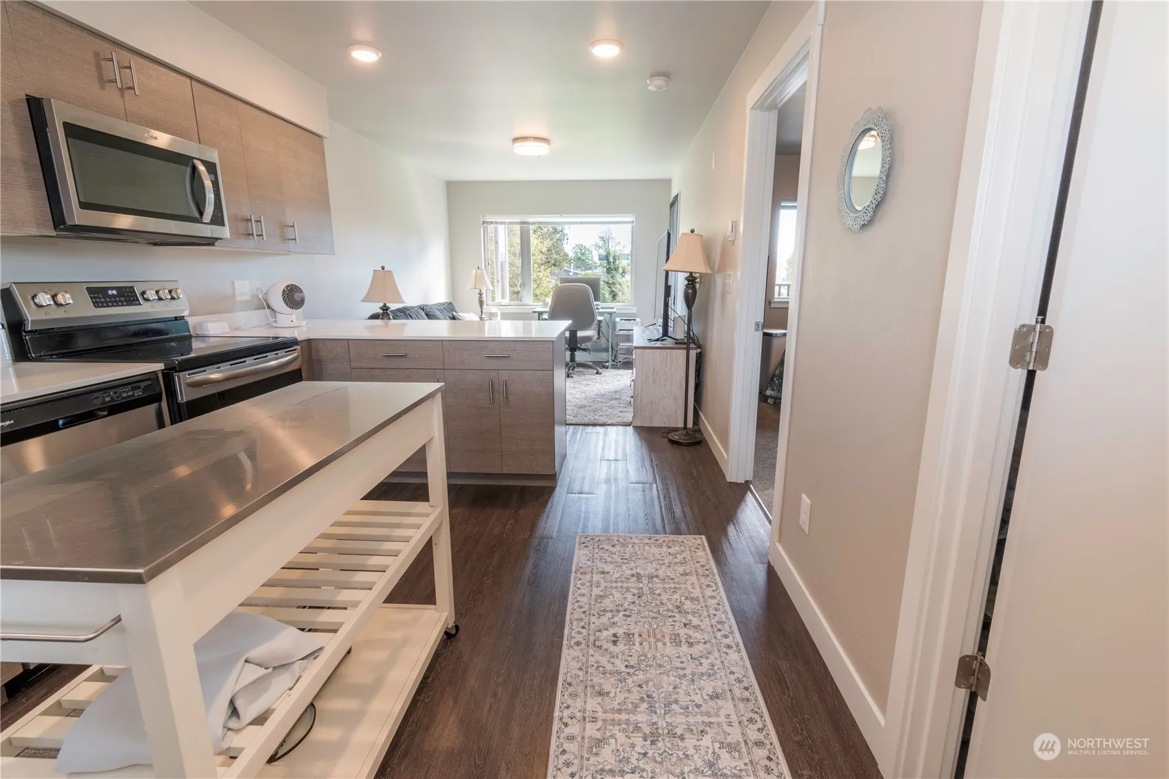 Enjoy peaceful evenings on your deck with views of Fish Trap Creek. Discover this impeccably maintained condominium, built in 2020, ideally situated near shopping, dining, the fairgrounds, schools, and community activities. It features upgraded finishes including quartz countertops and stainless steel appliances—fridge, convection oven, microwave, and dishwasher. Bathroom upgrades. New washer and dryer conveys with the property. This unit is wheelchair accessible and has been kept pet-free. Don’t wait—take advantage of this great opportunity to own instead of renting!