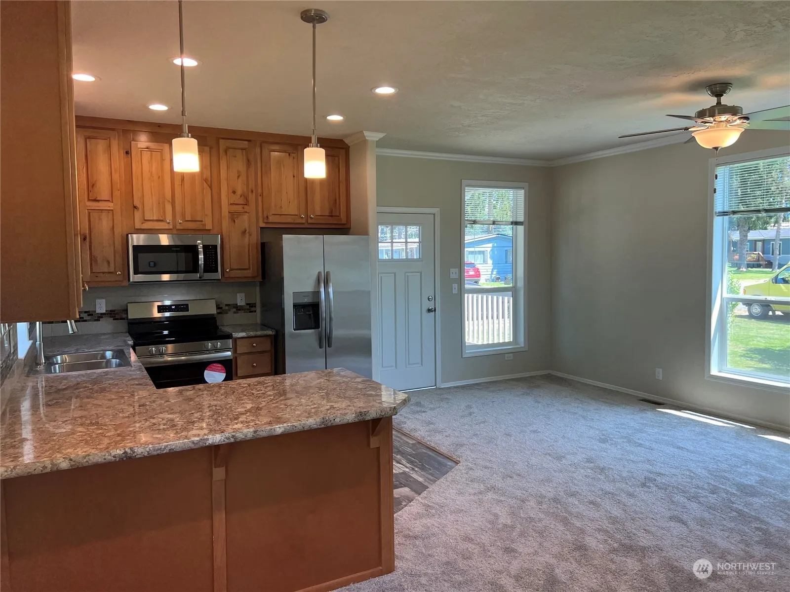 BRAND NEW 2024 home located in the premiere 55+ community of Van Fleets MHP. Home features 2 bedrooms, 2 baths, open and bright living room, kitchen with eating area, tile backsplash and SS appliances, primary bedroom with private bath. Large front deck to enjoy your large lot too. Park rent only $750. Welcome home!