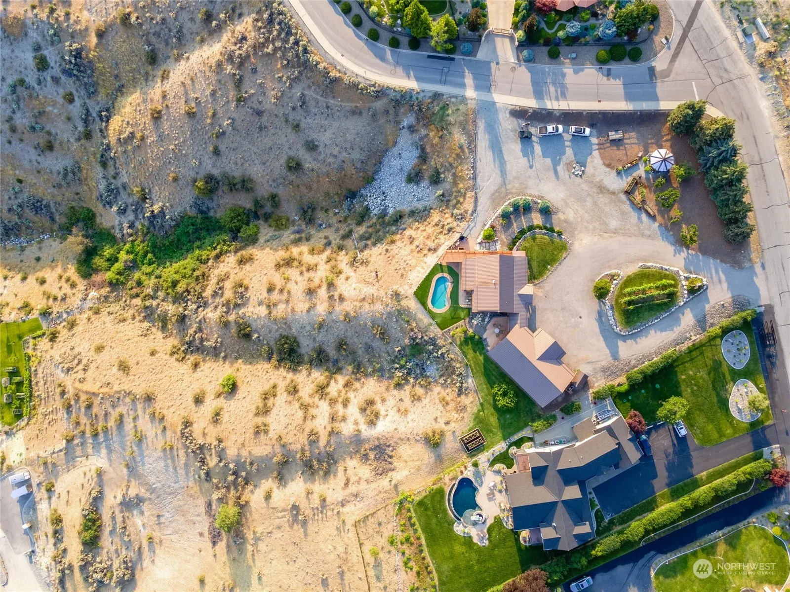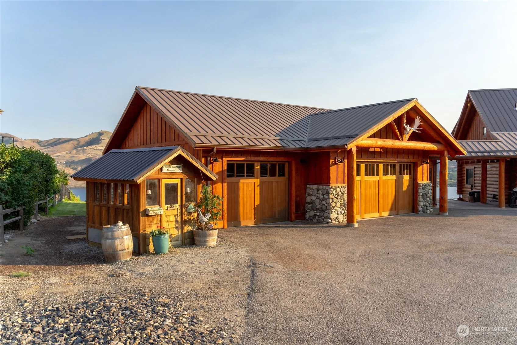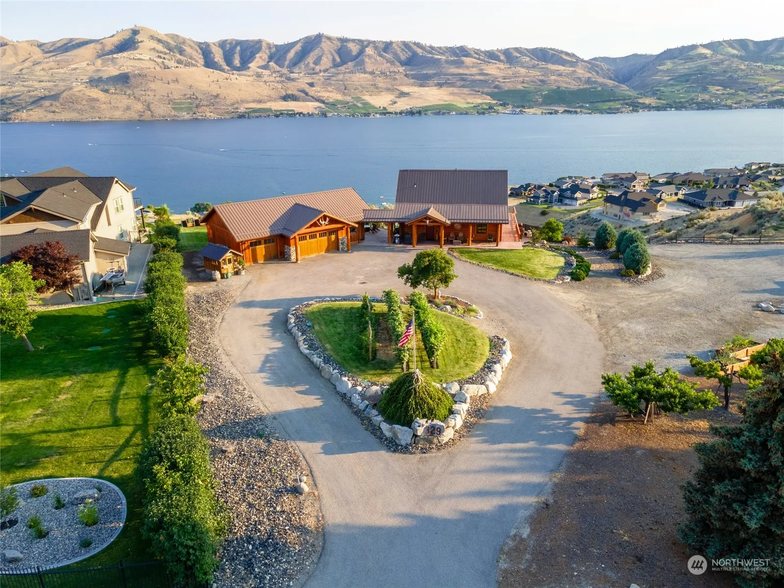 Unobstructed Lake Chelan view LOG HOME/ACREAGE with detached 3 car garage/shop on 2.23 acres (2 parcels) in desirable Chelan Highlands. This estate compound includes the main tri level log home with large wrap around cedar deck, 14×20 in ground pool added in 2016, Detached 1628 sq foot 3 car garage/ shop with approximatel 450 sq ft ADU, added in 2013. The garage has heated floors and fully insulated. The lot offers a circular chip sealed driveway that allows access off Highpoint Ln and Crystal Dr. Ample off street parking and 2 gardening heds included. HOA includes community waterfront amenities i.e. day use beach access, two community swimming pools, boat launch, day use docks, buoys, tennis/pickleball courts, and playground and restrooms
