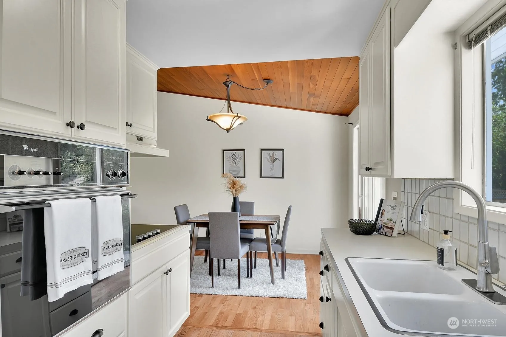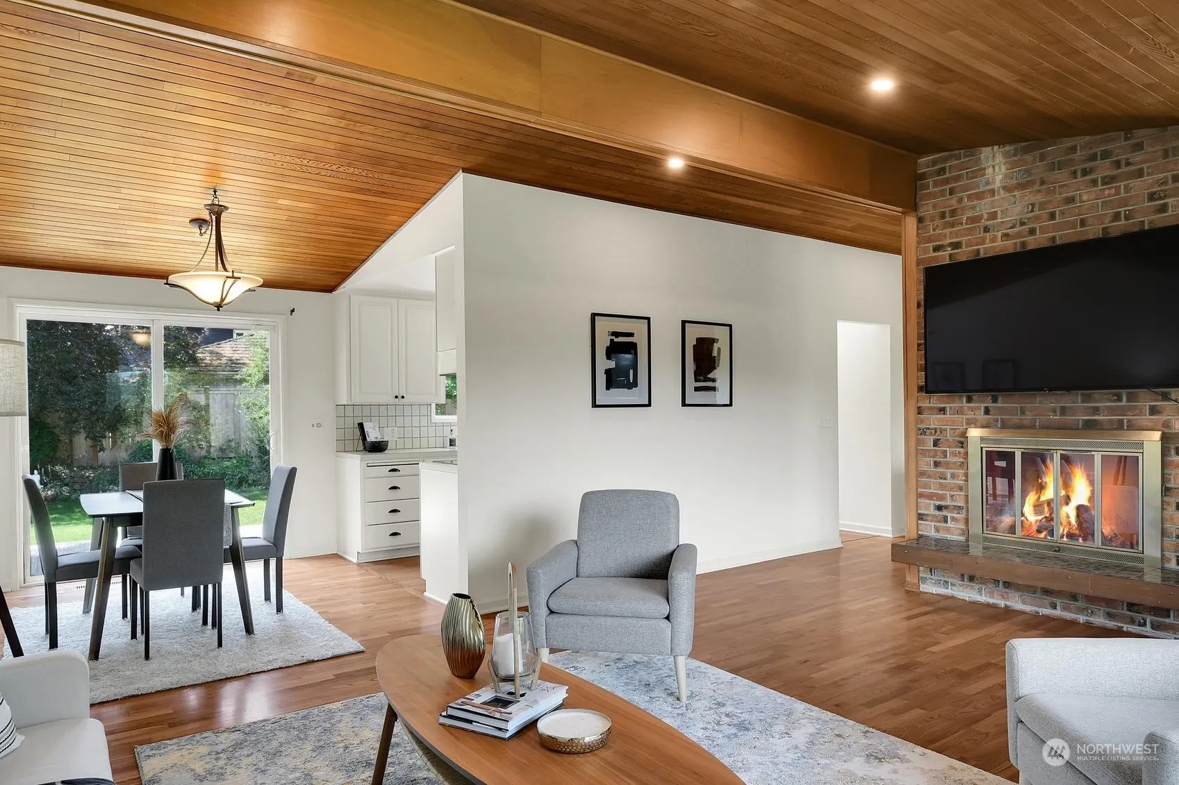Nestled in Edmonds’ coveted Seaview, this 5-bed split-level offers thoughtfully designed floor plan for comfortable everyday living & income potential. Great room boasts cardecked vaulted ceiling w/ exposed beam & hardwoods. Inviting gas fireplace w/ floor-to-ceiling brick surround. Huge triple-pane windows throughout flood spaces w/ natural light. Bright, white kitchen w/ tons of cabinetry. Sliders lead to level, fully-fenced backyard surrounded by mature landscaping for seamless indoor/outdoor flow. Gas furnace (2021) & electrical panel (2020). Corner Primary w/ en-suite bath. Lower level w/ spacious rec rm & 2nd fireplace. Separate entry, second kitchen & washer/dryer make it ideal for multi-generational living or AirBnB/income potential