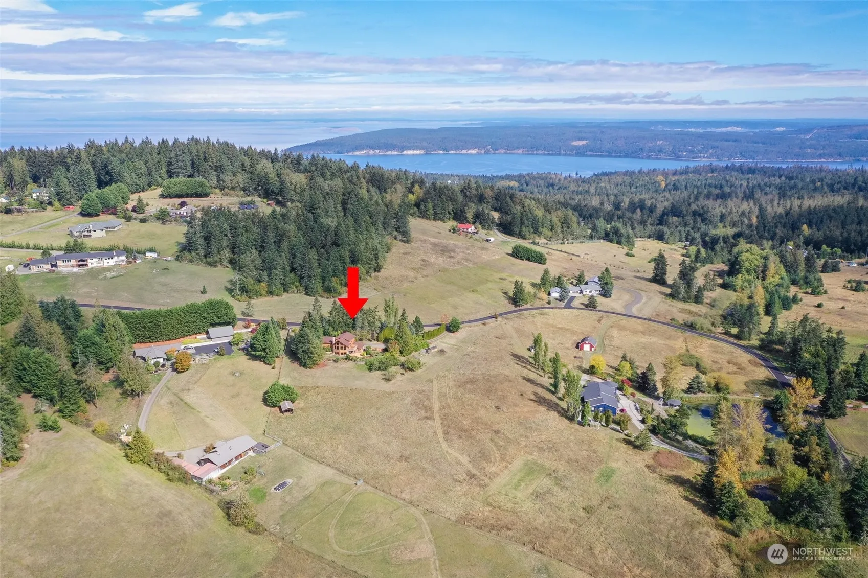 First time on the market! This Classic NW design home on 5 acres offers privacy, opportunity to have animals and lots of room for a large group of people. 4BR- (4 br septic), 2.5 BA, and 2 kitchens with a delightful view of the mountains and Happy Valley. There is a wood stove on the ground level and a propane fireplace on the next level. Terraced gardens with fruit trees, fenced pasture, and a small outbuilding An RV height garage and a standard garage are part of the property. Put it on your list!! Home is being sold AS IS.