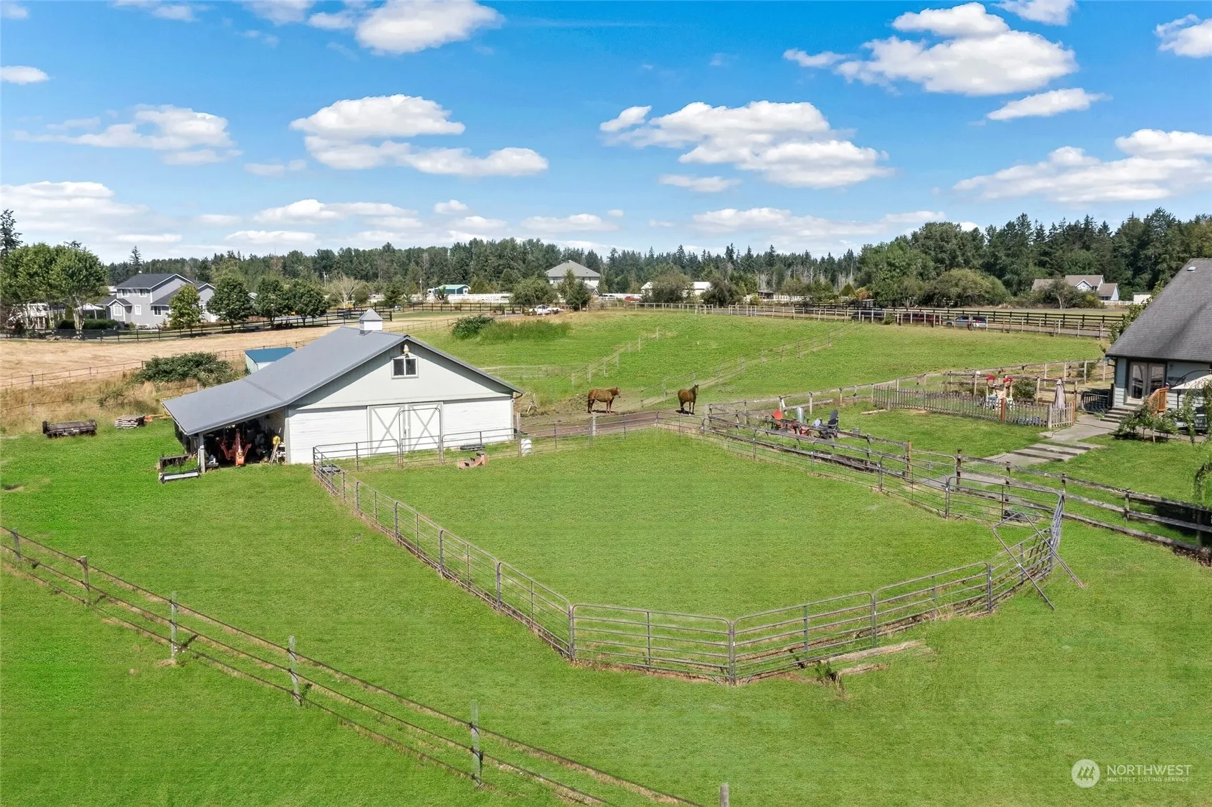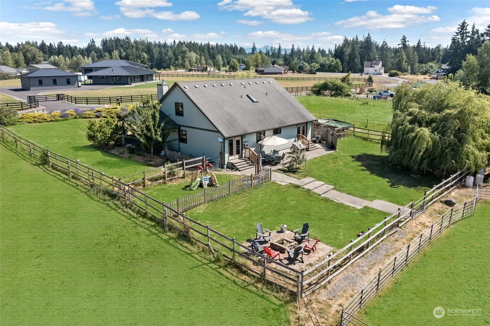 There are 2 houses on this 5-acre property. Both are stick-built homes and include a nice 3-stall barn. Additional dwelling unit (ADU) is a two-bedroom rambler which is currently vacant but could be rented out to provide extra income. Or the ADU could be a separate residence for other family members. Primary house has 4 bedrooms and 2.75 bathrooms plus lots of extra space. ADU has 2 bedrooms and 1 and a half baths with over 1,000 sq ft of living space plus a garage and its own yard! Both homes enjoy their own privacy. Barn features 12×12 padded stalls, tack room, extra storage and hay elevator. Fenced and cross fenced. Seller moving out of state. Help them get there! ADU is vacant and has its own key box on the front door.