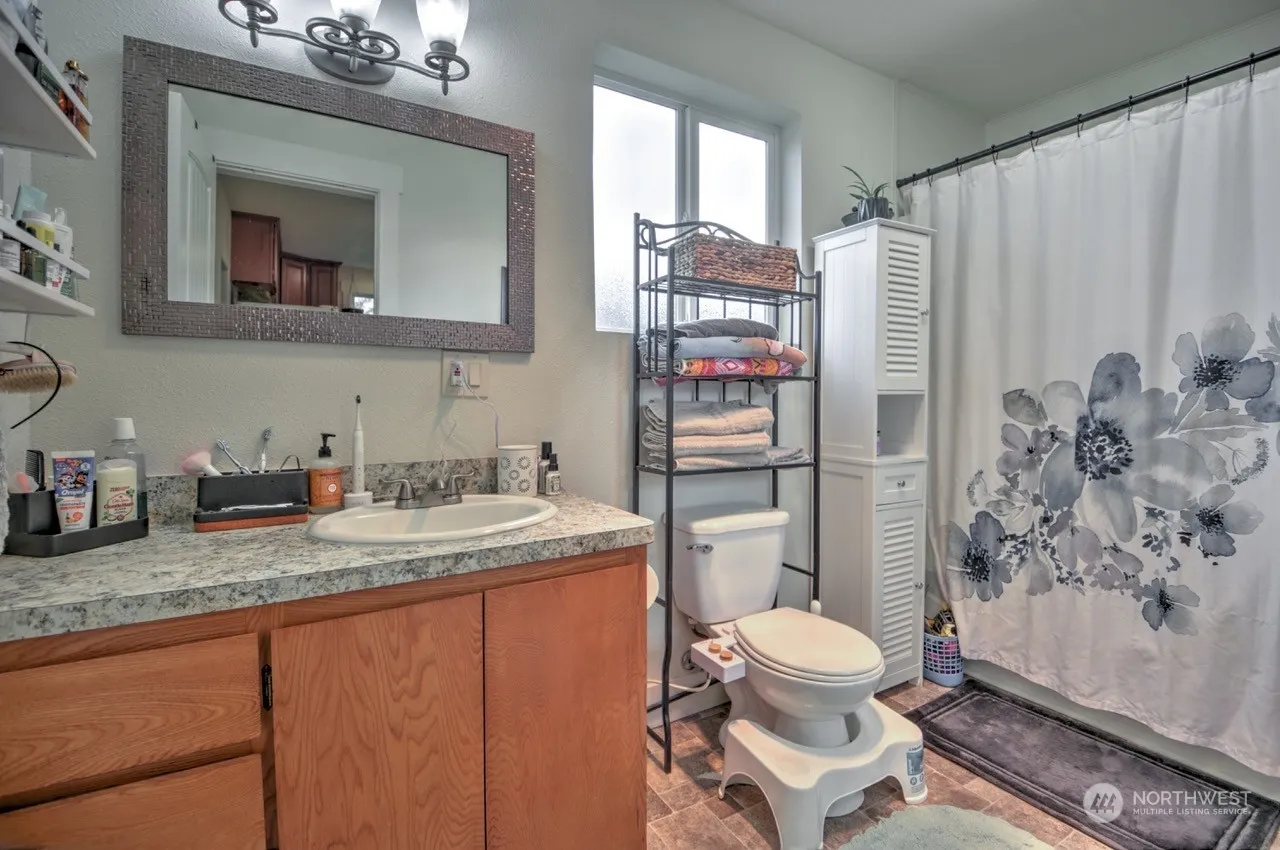 Welcome Home! Remodeled and maintained very well by the owners. This home has two large bedrooms downstairs off of the dining and living room as well as an oversized bathroom, a mudroom off the back entry and large kitchen with room for a small dining table or expanded counter space. At the top of the stairs there is a large landing area off of two other bedrooms that could be used as a extra storage space or a home office with plenty of natural light peaking in. Home has a fully fenced side-yard with a deck. The rest of the lot is partially fenced. Property is situated on a large corner lot of a dead-end street with easy access to I-5 and shopping centers.