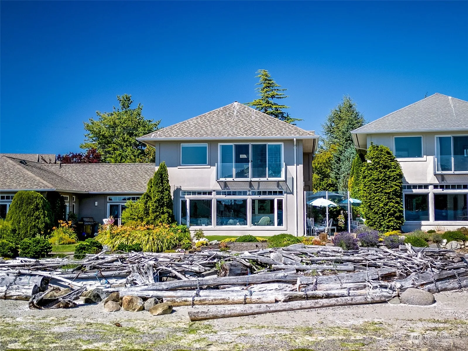 Coveted Pleasant beach waterfront, Bainbridge Island’s Gold Coast. As you step into this lovely two story home, you are greeted with sweeping views of the Sound. Lush gardens lead to a charming light filled kitchen with vintage barn door pantry. The living/dining great room is an entertainer’s dream. French doors lead to the adjacent patio with storm glass for year-round outdoor enjoyment. Your low bank waterfront brings the gorgeous views inside. Enjoy an attractive main level bedroom with ¾ bath. Cascading stairs lead to the second floor en-suite with walk-in closet, full bath, & sitting area. There is an additional guest bedroom with a private bath just down the hall. Located in the heart of Lynwood Center. Walk to shops & dining.