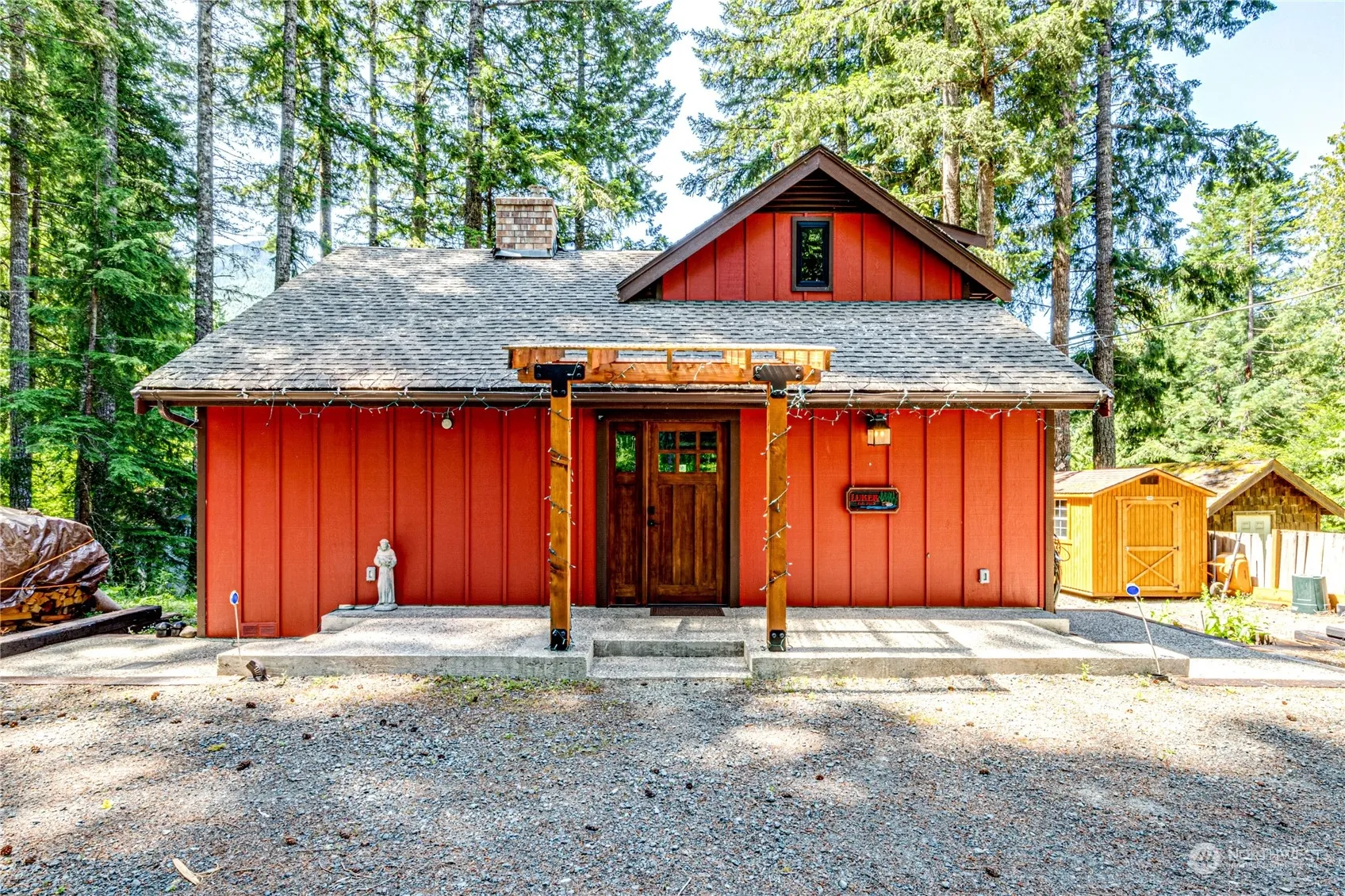 ENCHANTING contemporary home, nestled on Lake Dawn with private dock and no-bank water front. Professionally remodeled from top to bottom, quality in craftsmanship and finishes are unparalleled. Custom Bliemeister cabinetry, natural quartz counters, copper sinks, tiling throughout, wood accents including hardwood floors, rustic decor, built-in bookshelves, blinds, butcher block, railings, curved posts & beams, planked ceilings, freestanding wood stoves, floor to ceiling rock chimney, french doors to expansive deck with view of the lake, “loft-like” suite, huge bonus space downstairs, and so many details to see in person. Enjoy all 4 seasons here!