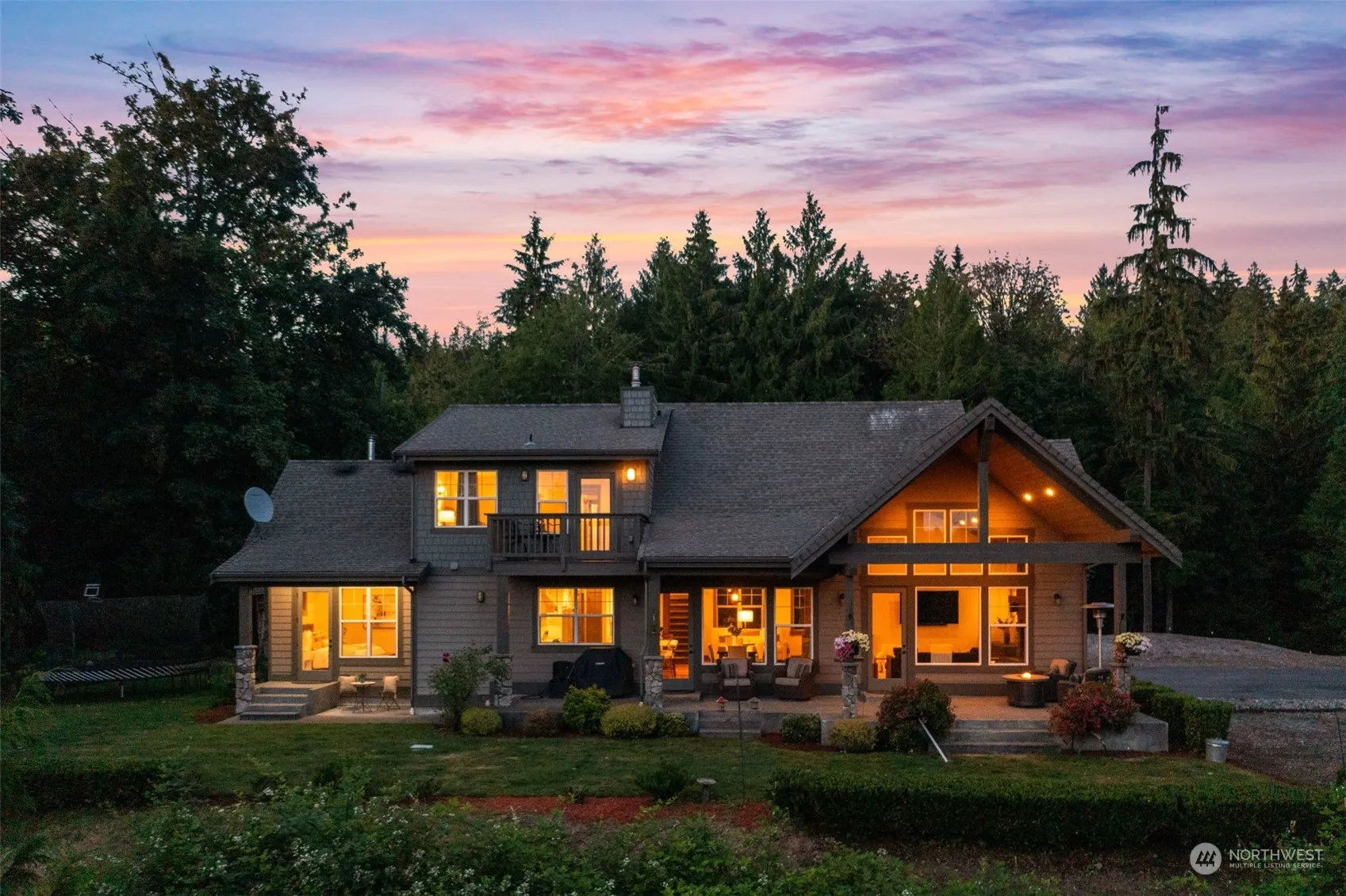 Welcome to your one-of-a-kind Modern Lodge style estate on 5.25 private acres. Embrace picturesque valley views & experience true NW living as bald eagles soar among the trees. This custom built 5 bed / 5 bath home offers luxury, comfort & timeless details. Stunning hand-hewn beams & gorgeous hardwoods. Chef’s kitchen w/high-end SS appliances, gas range w/pot filler, double oven & XL eat-in island. TWO primary suites each w/stacked-stone fireplace & breathtaking views! Double washer/dryers in convenient mudroom w/storage. Large beds upstairs, plus fun bonus area for playroom, theater – you name it! 3-car garage, A/C, wired for generator. Covered porch & fire pit, perfect for entertaining. Mins to MSFT commuter & desirable Riverview schools.