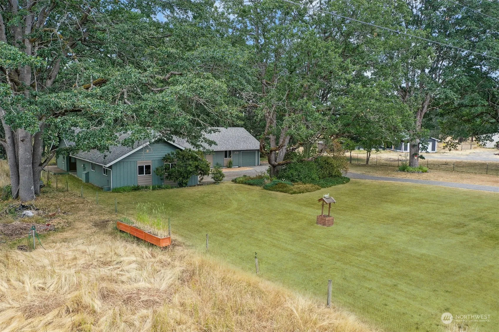 With a few upgrades, this could be a real gem! Shy 2 acres, fenced & cross-fenced, ready for your critters, with tall mature oak trees providing summer shade. Storage space galore! Two-car garage plus separate one-car garage w/shop area & covered carport behind for your lawnmowers & tools. Spacious flowing floor plan w/exposed beams, skylights, recessed lighting. An abundance of cabinetry in Kitchen. Step down in the Living room w/pellet fireplace wrapped w/brick feature wall. Family rm gives access to wrap-around deck & covered patio. Dual closets in Primary Suite w/private bath. Two additional guest bdrms. Sitting on the outskirts of Yelm, away frm the city bustle yet close proximity for shopping & schools. Easy commute to Olympia & JBLM.