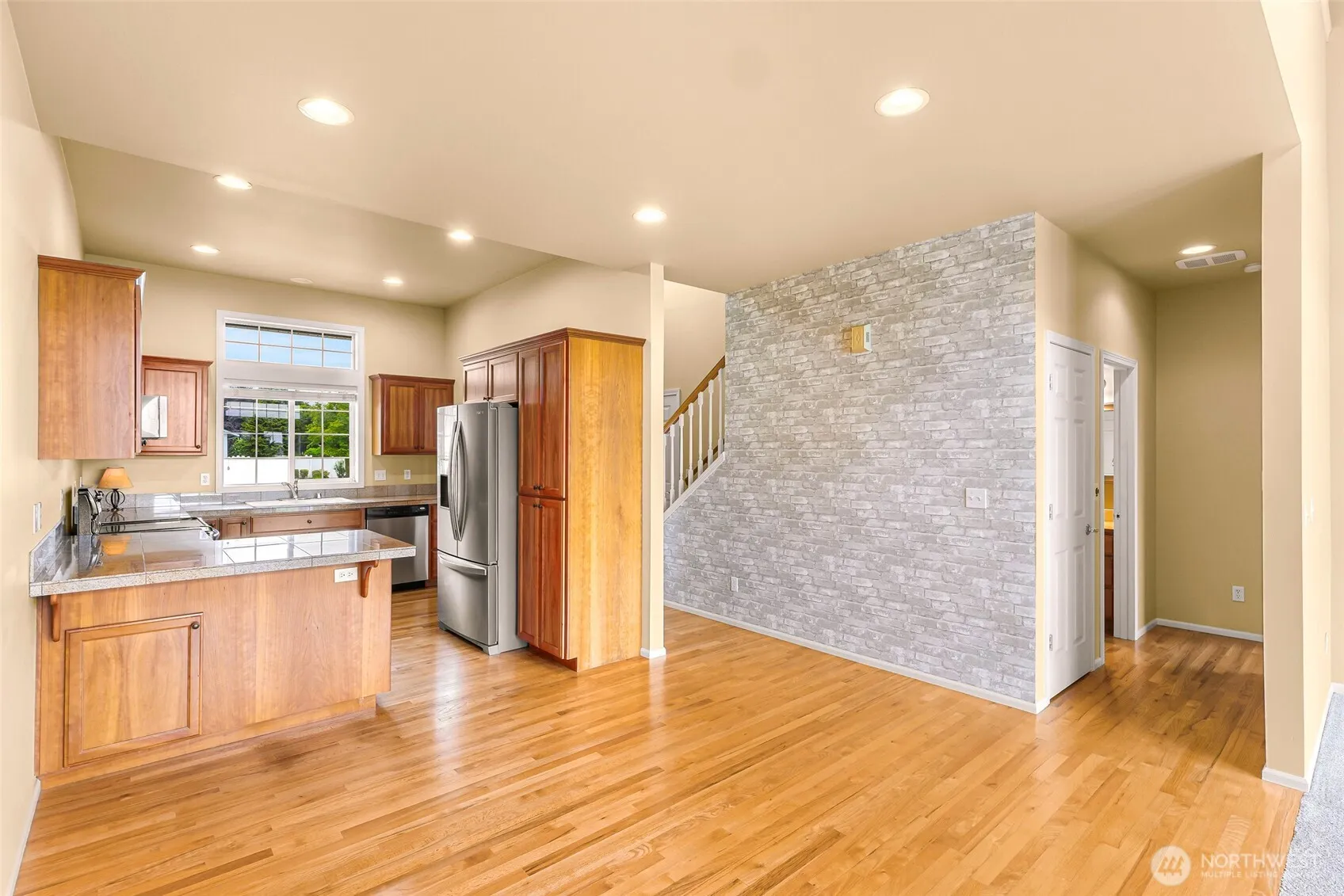 Beautiful 2-story golf course condo in the heart of Lynden, perfectly placed on quiet cul-de-sac, close to walking trails, restaurants, parks, and much more, just minutes to downtown Lynden. All primary living on the main floor, featuring large gourmet kitchen w/granite, shaker cabinets, and hardwood floors, opening to spacious dining & great room with vaulted ceilings, gas fplc, built-ins, and walk out to spacious patio with westerly views overlooking the golf course and sunsets. Main floor primary suite features walk in closet, separate walk-in shower and soaking tub. 2nd floor leads to large upstairs loft overlooking the main floor, great for home office, full main bath, bonus room/den & second bedroom. Large attached 2 car garage & A/C