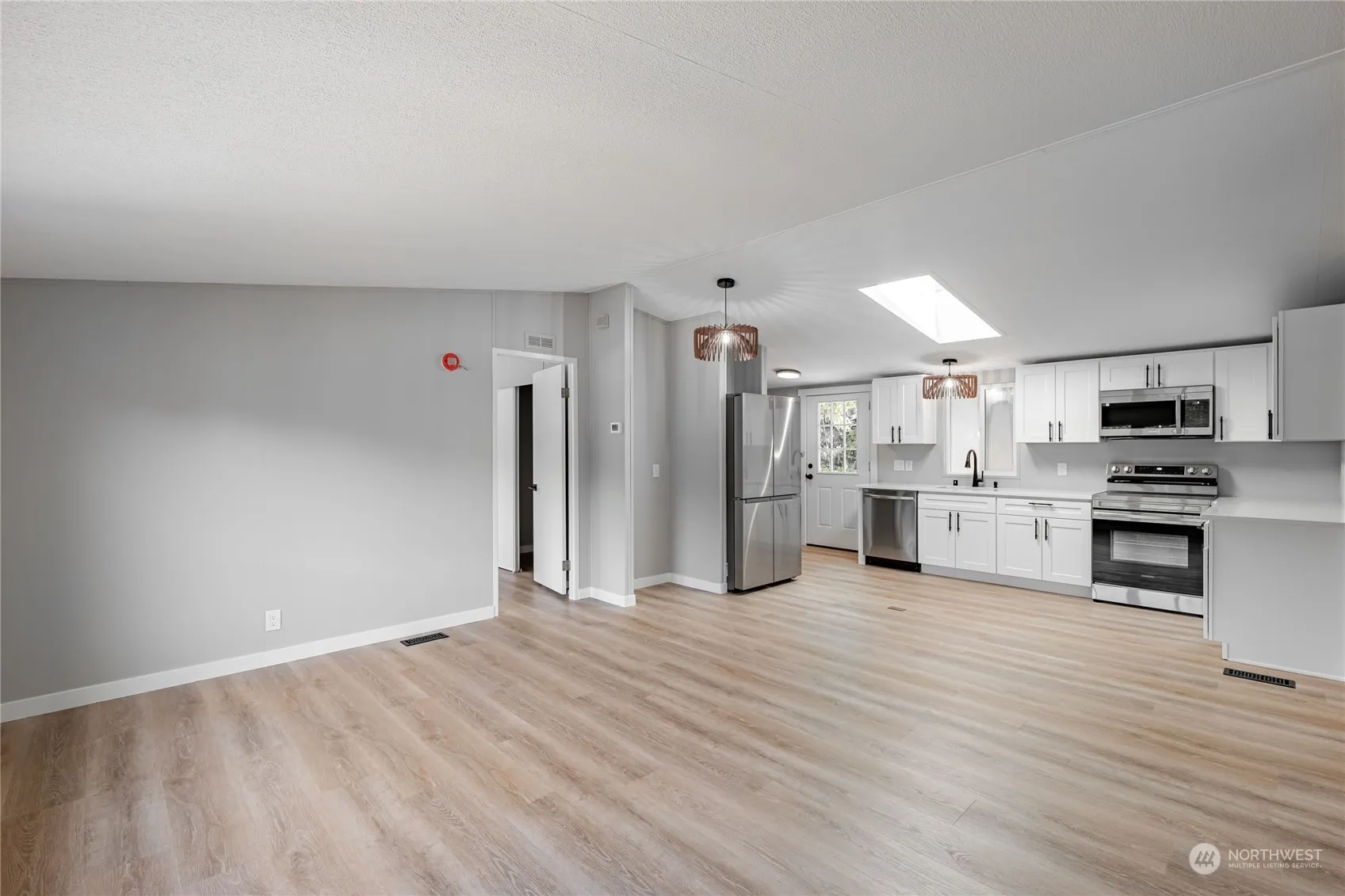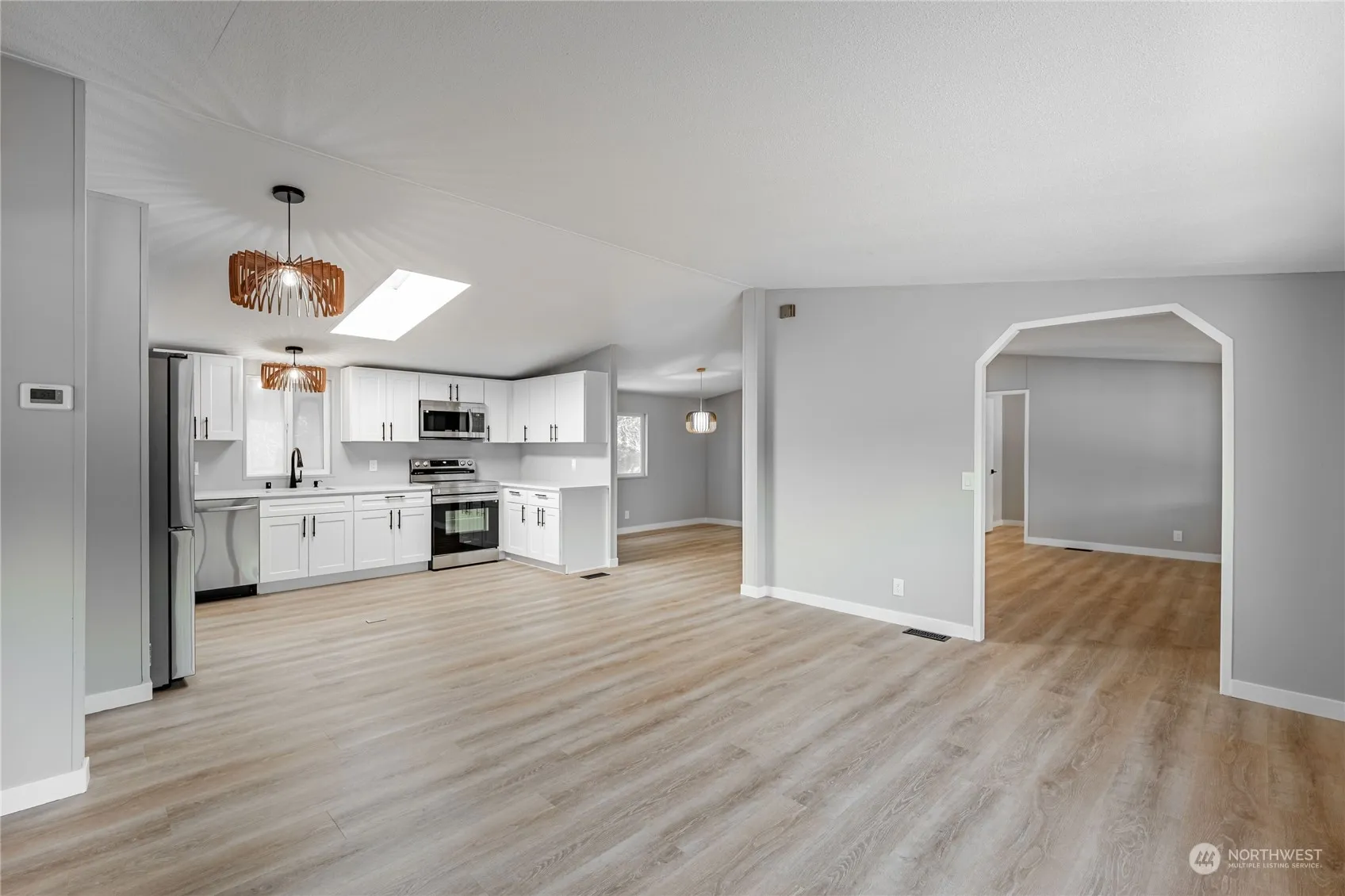 Welcome to this freshly renovated 3-bedroom, 2-bath gem sitting on over an acre of peaceful, private land. Enjoy cooking in the beautiful kitchen with stainless steel appliances, sleek quartz countertops, and soft-close shaker cabinets. The house also features a brand new roof, durable LVP flooring, and a brand new water heater. The detached 2-car garage provides ample space for vehicles and storage. Tucked away on a quiet, private street, this home offers both comfort and tranquility.