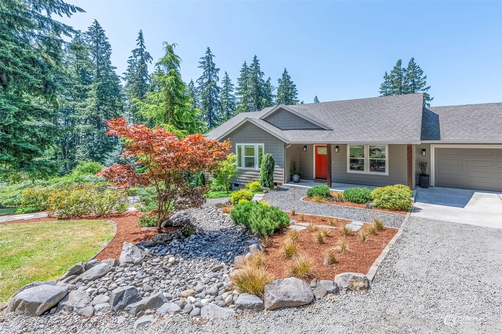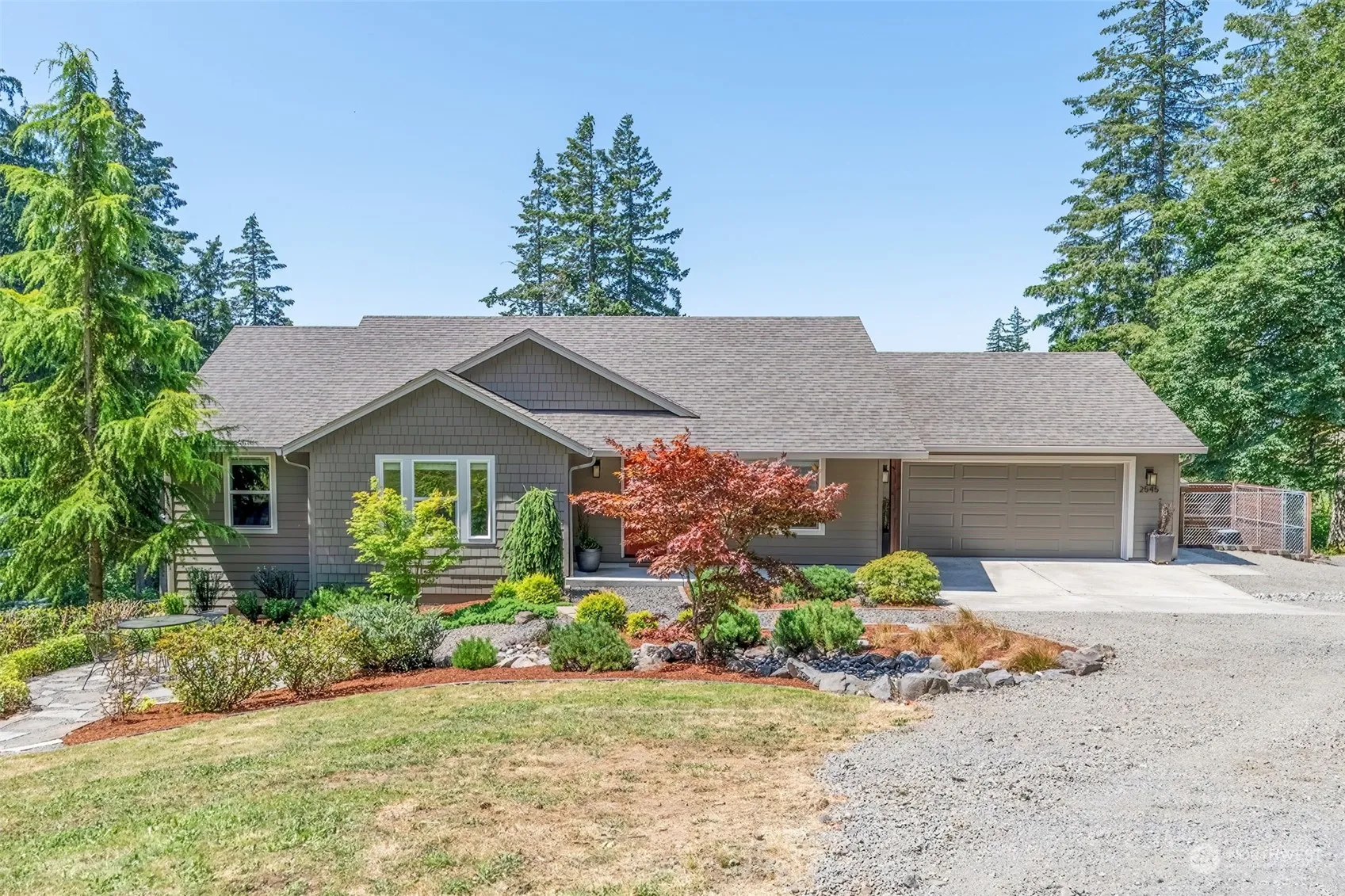 Your Very Own Oasis! You will love this fantastic property nestled in the Kalama countryside with a beautiful park like setting and river & territorial views! This well appointed home features vaulted ceilings, Brazilian chestnut hardwood flooring in the main living areas. The kitchen showcases quartz counter tops, undermount sink, stainless steel appliances, formal dining & recessed lighting. The primary suite comes complete with walk in closet, soaking tub, double sinks, quartz counters, & full sized shower. The home also features forced air heat, heat pump & dog washing station. You will love taking in the view from your very own covered deck. The grounds are fully fenced, gated, & come with dog kennel, 8×14 shed and a treed setting.