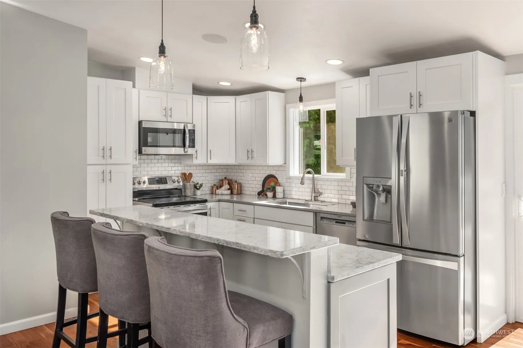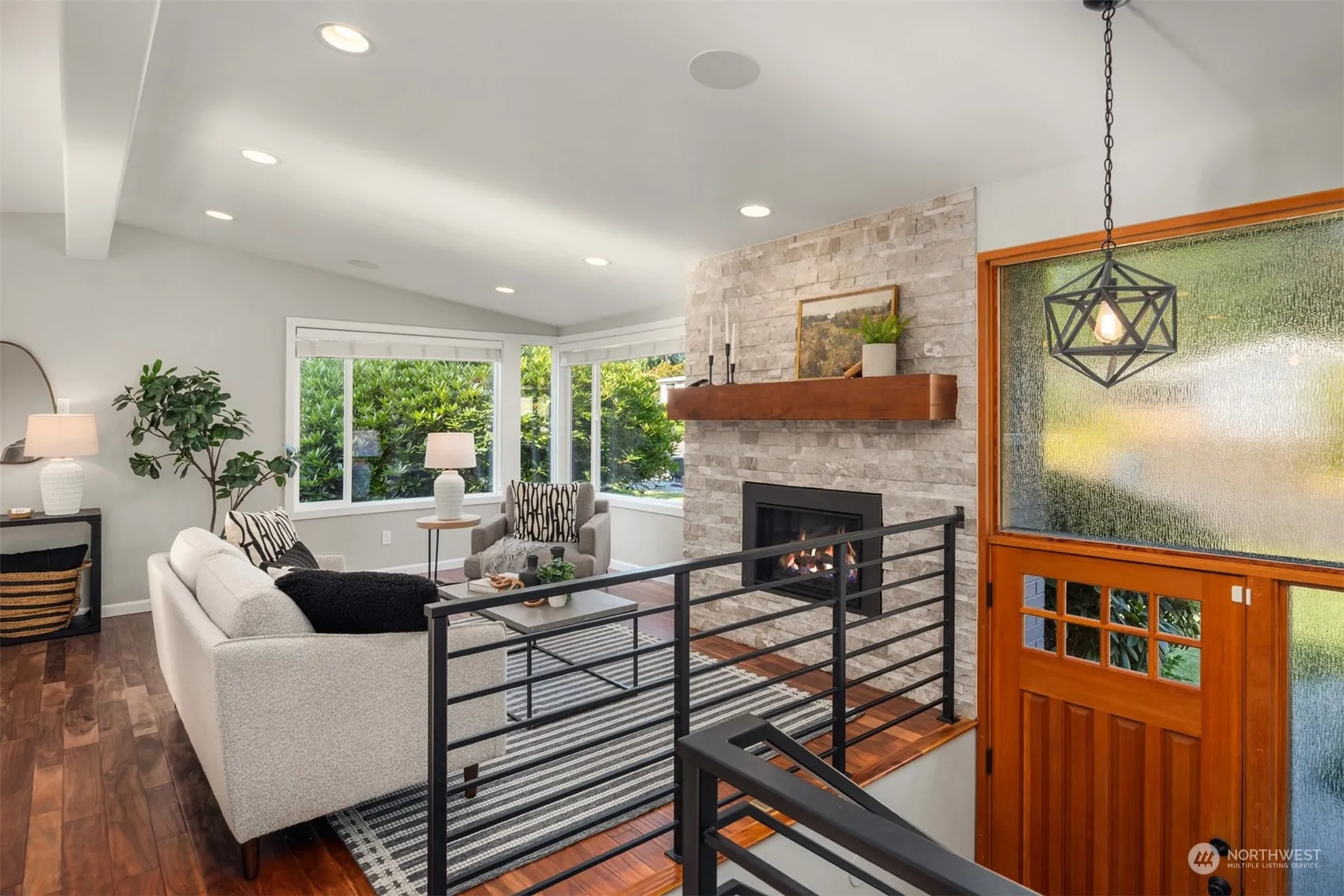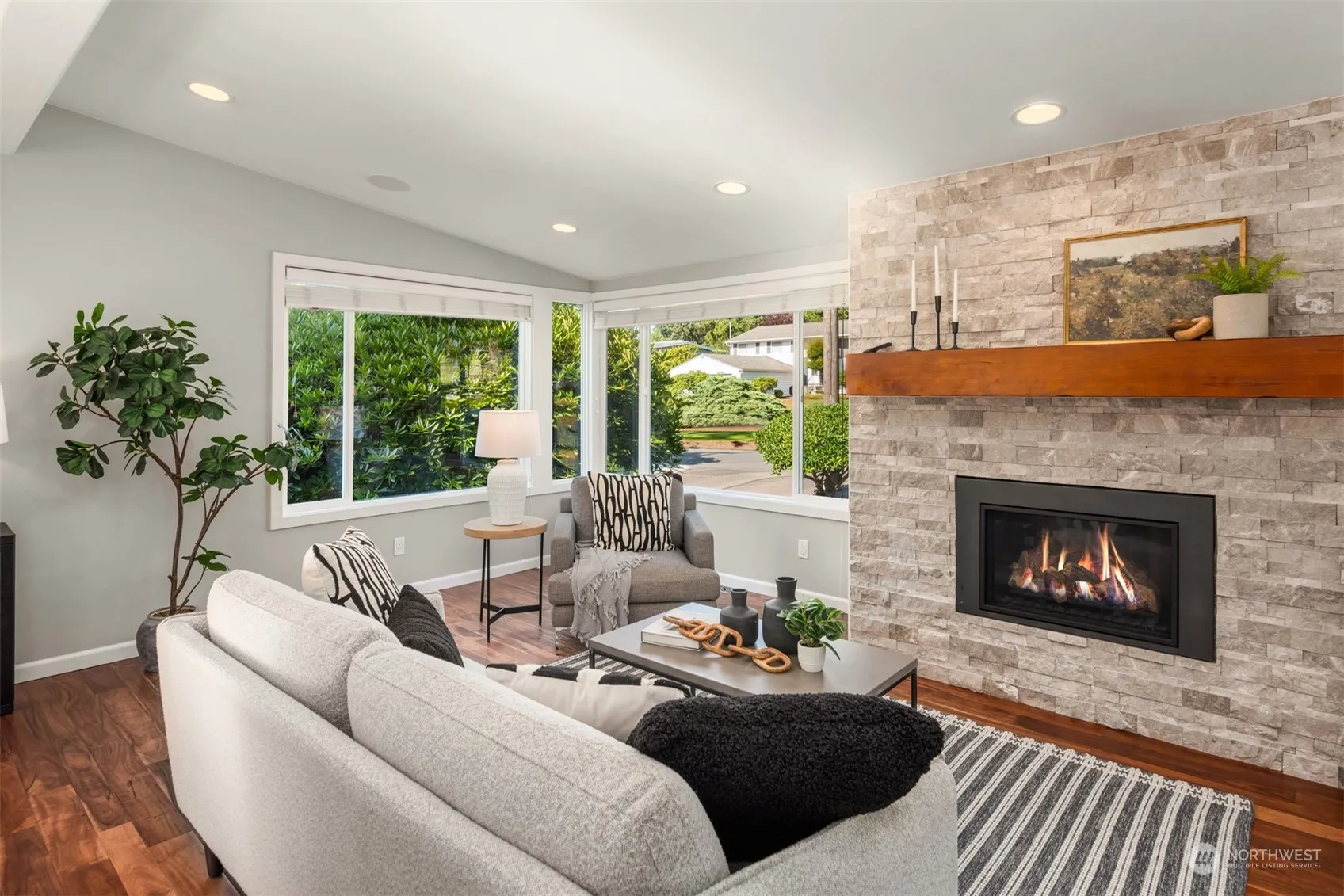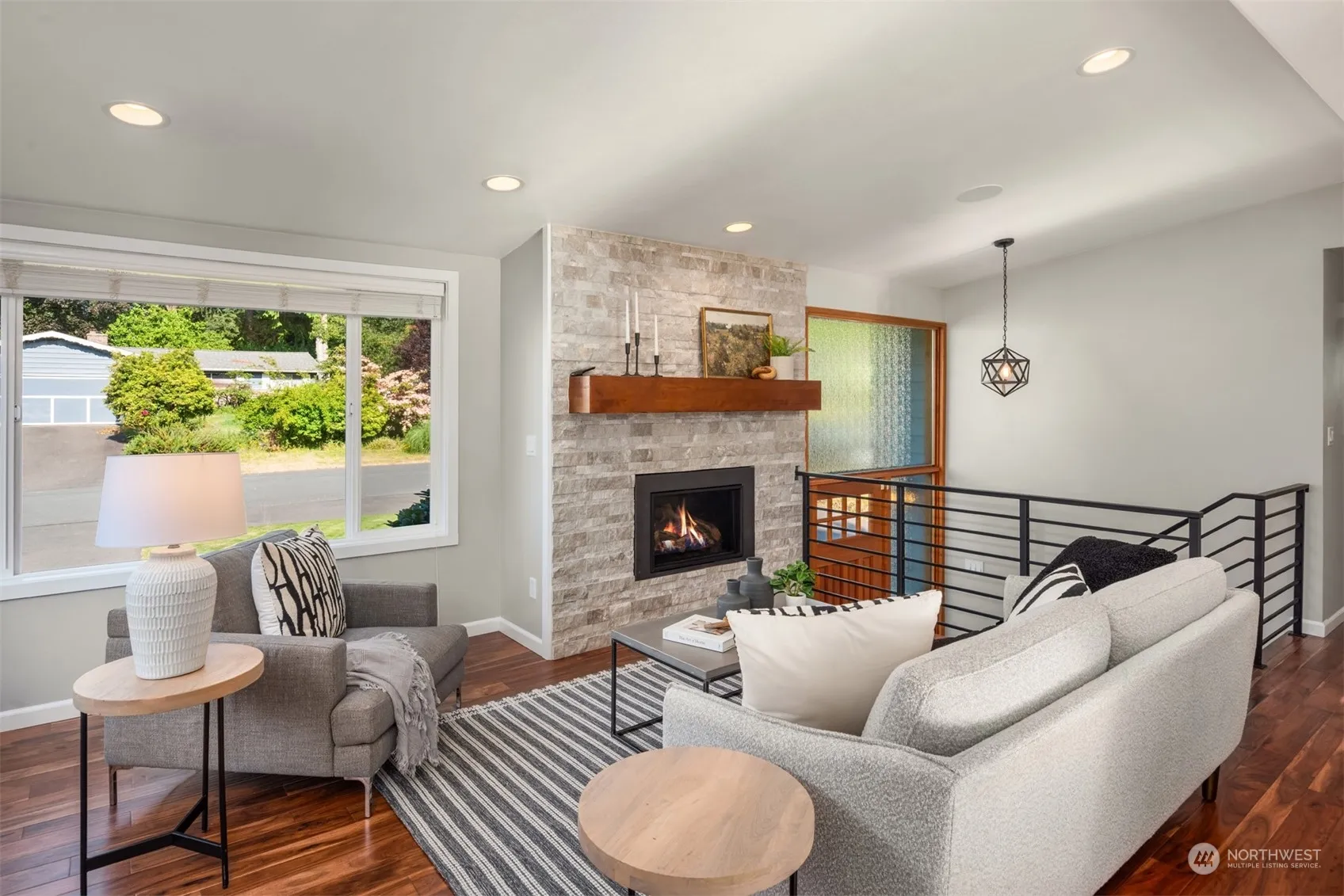 This stunning 3 bed + den Mid-century is perfection! Completely renovated from top to bottom with high-quality, designer updates. Open concept main level with chef’s kitchen with stainless appliances, eat-up bar & quartz counters. Living room with gas fireplace, stacked stone surround & wood mantle. Adjacent dining space with access to the entertainment deck overlooking the HUGE back yard and lower level patio. Primary bed with en-suite 1/2 bath, 2 more beds and full bath on the main. Lower level includes a rec room with gas fireplace, custom 3/4 bath & office space (could be used as 4th bed?) and laundry. Cool off with AC after enjoying all of the fun summer activities that Edmonds has to offer. Top-rated schools. RV parking. Must see!